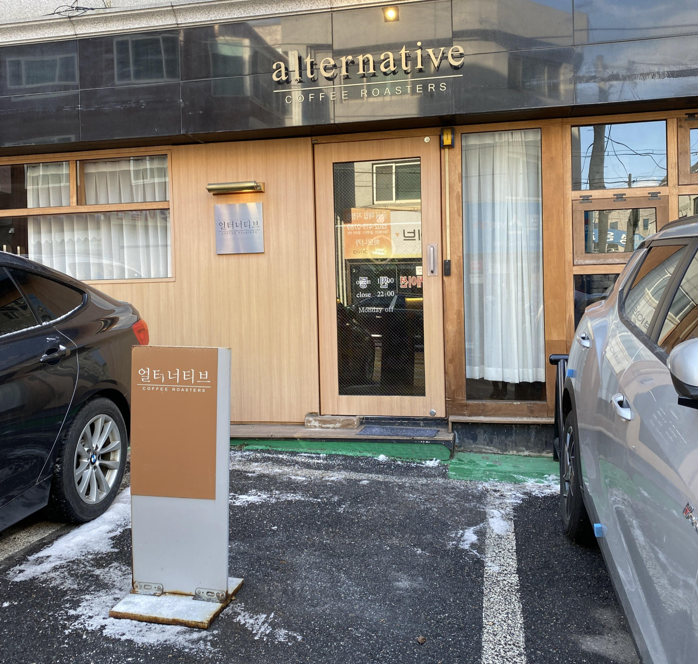 빙판길 지나 신호등 건너 약간의 오르막을 지나 만난 얼터너티브 카페.