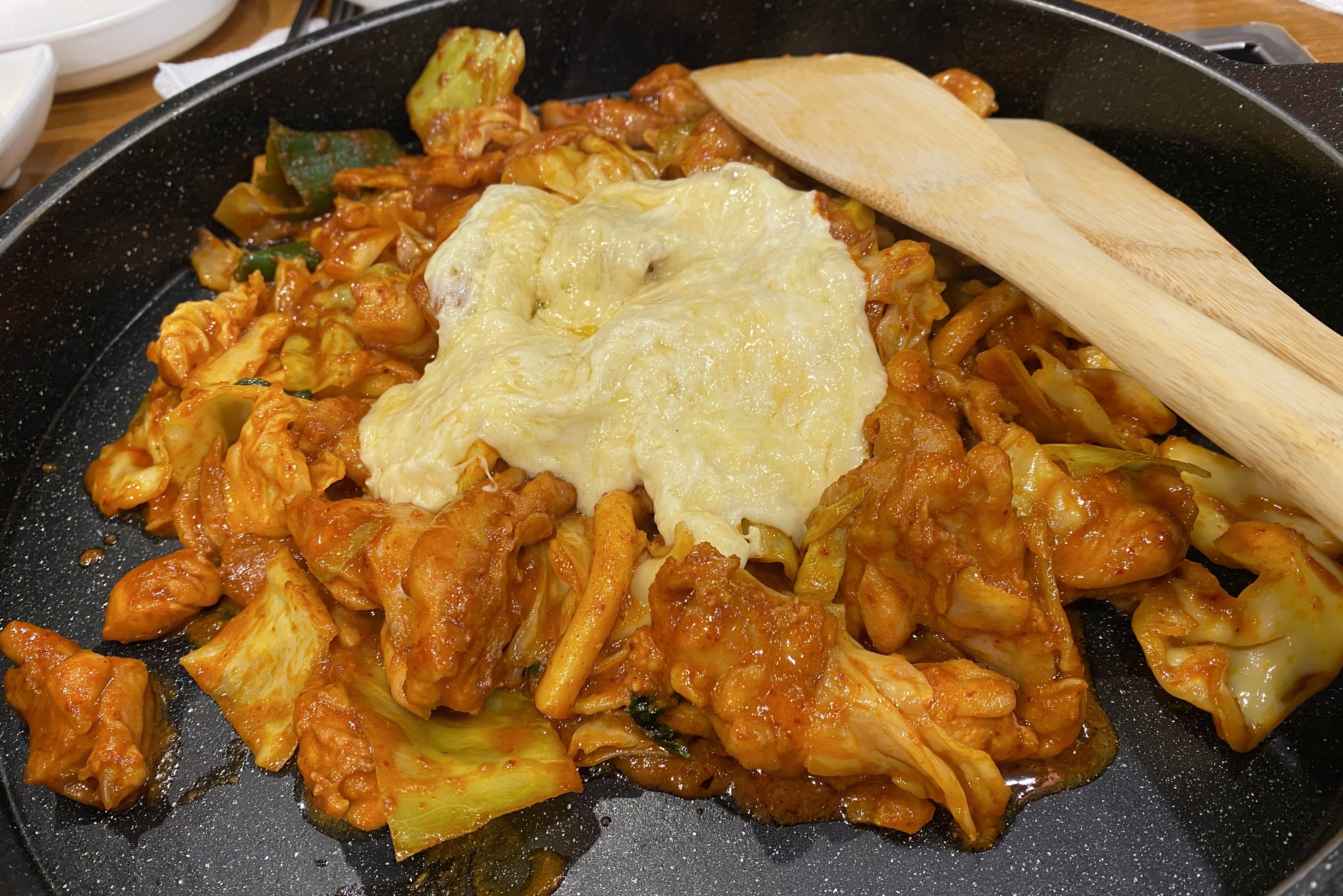 기본 닭갈비에 치즈 사리를 하나 추가했다!
