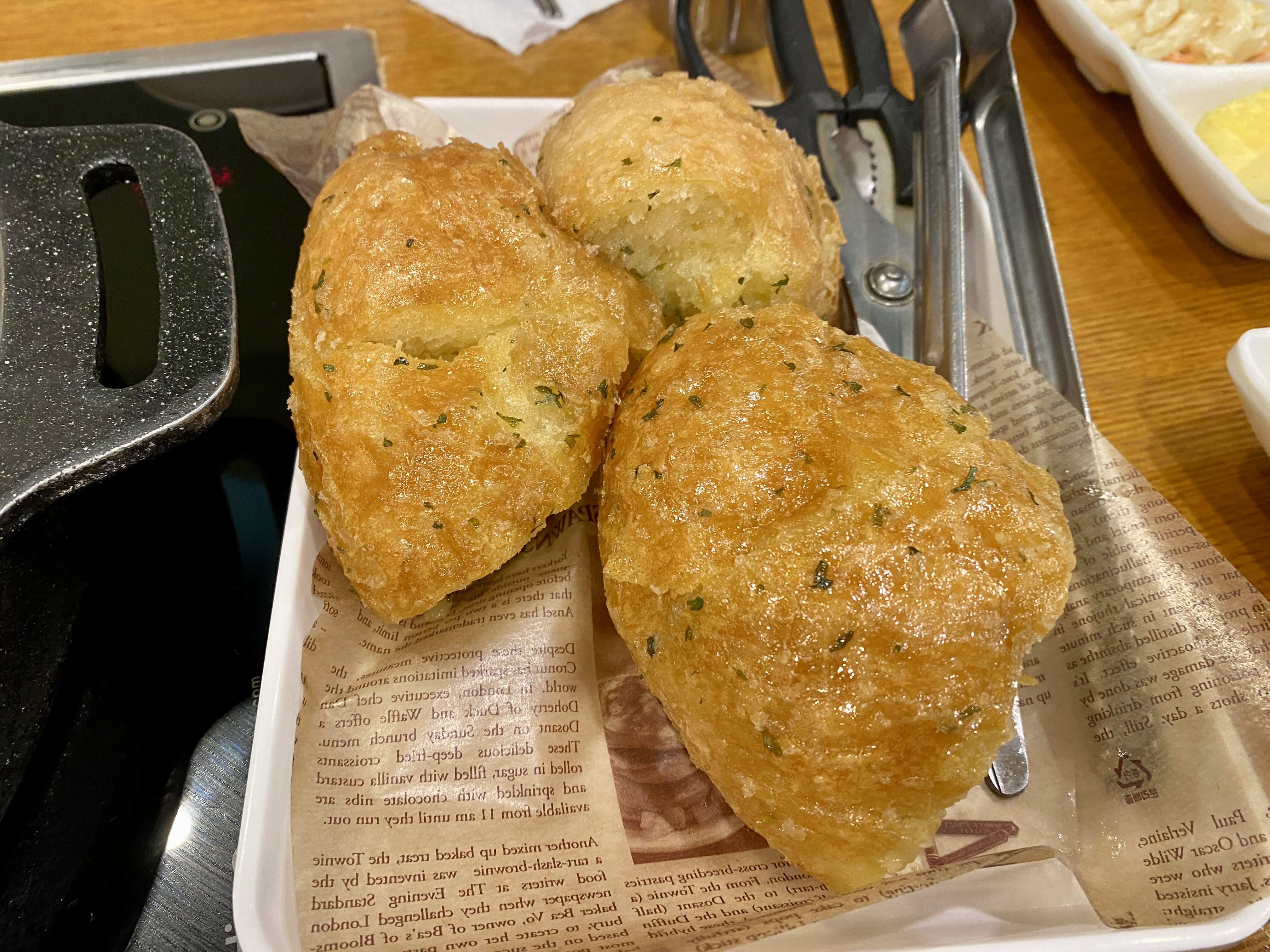 그리고 여기는 닭갈비를 시키면 달달하고 마늘맛 듬뿍 나는 마늘빠네를 1인당 1조각씩 준다.