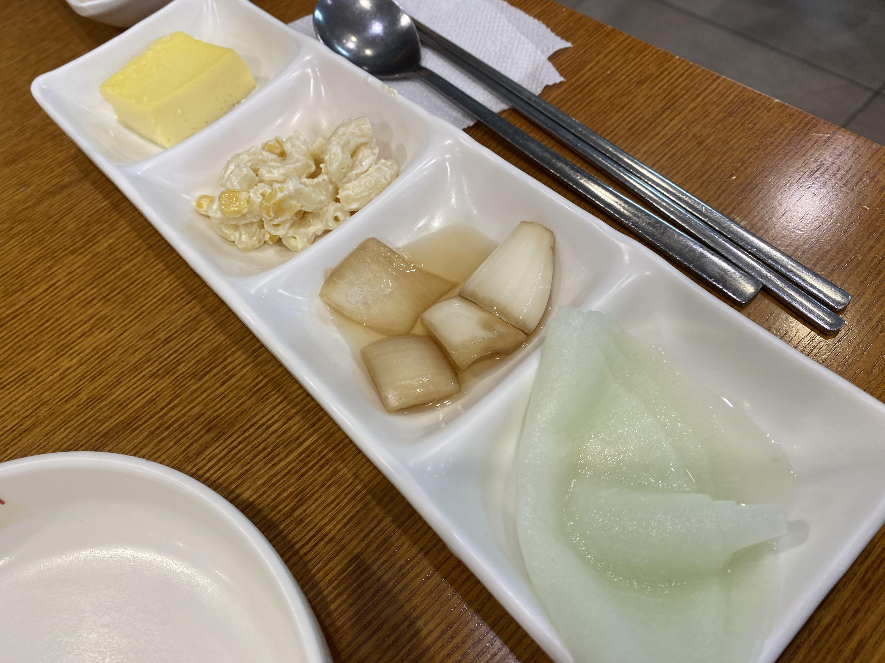코로나 시국에 맞게 반찬도 한 사람당 한 개씩. 이렇게 주셔서 위생면으로 좀 더 안심이 된다.