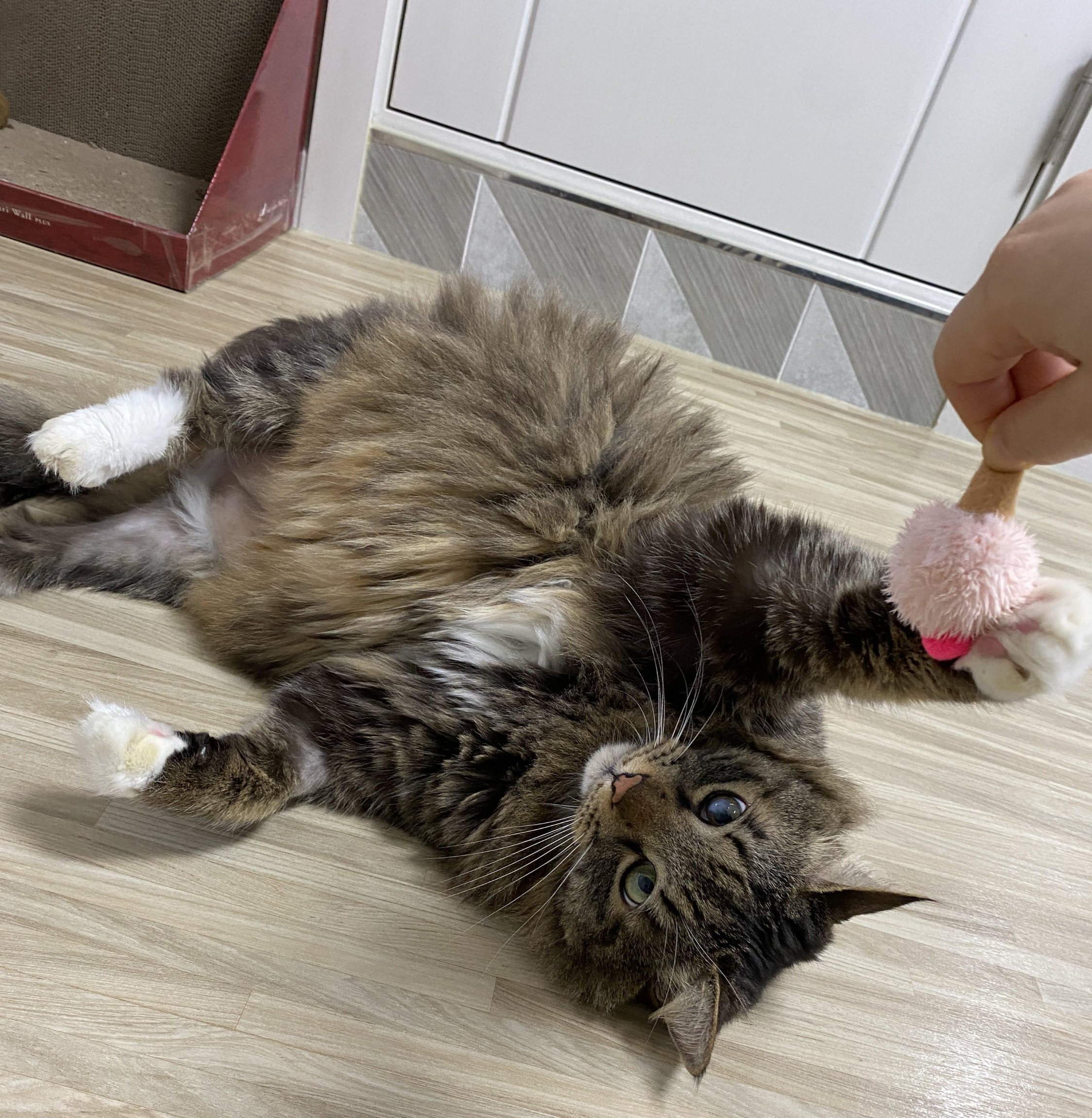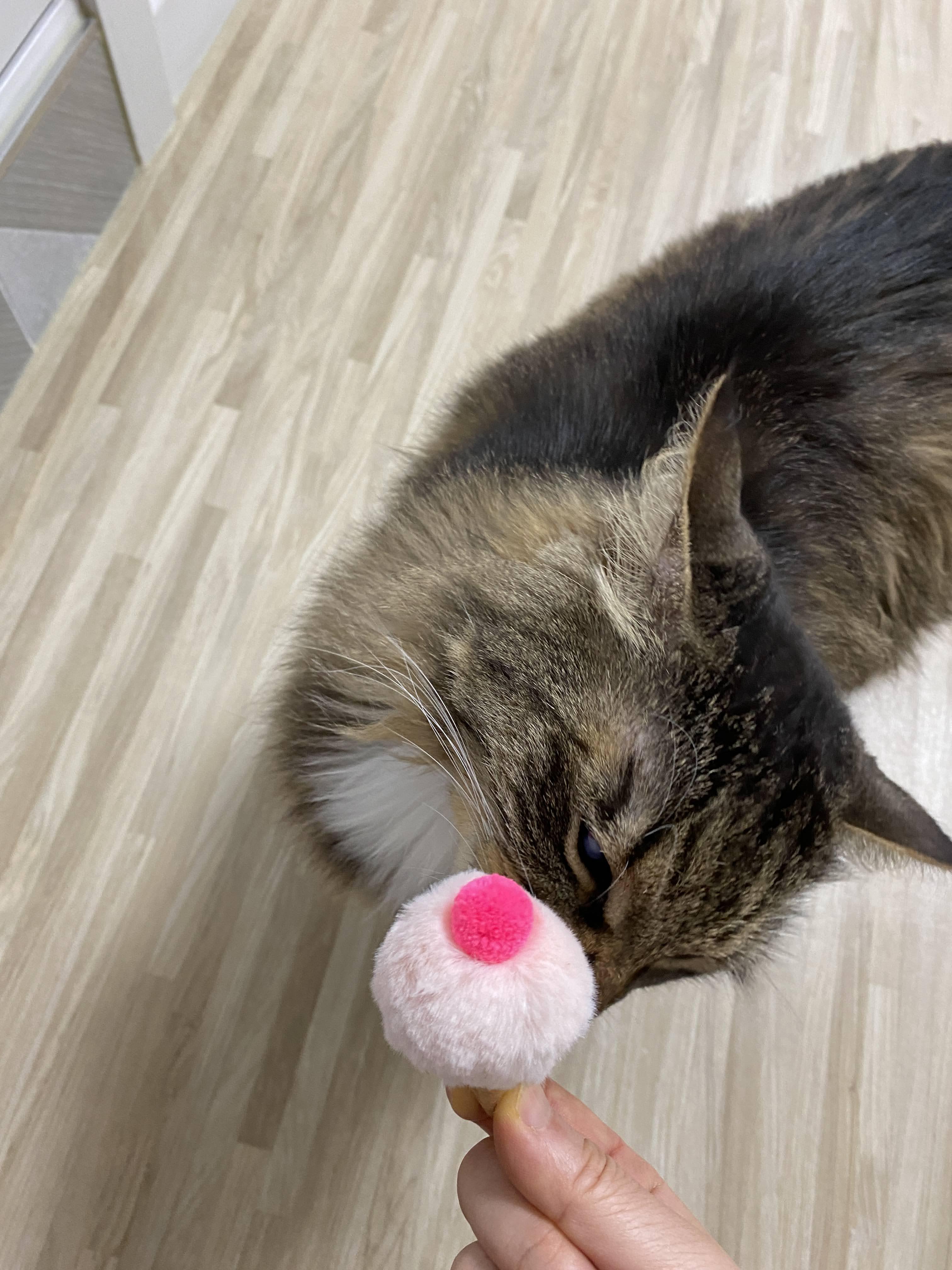 오늘은 캣닙통에서 푹 묵혀 두었던 아이스크림 모양 장난감을 꺼냈다.