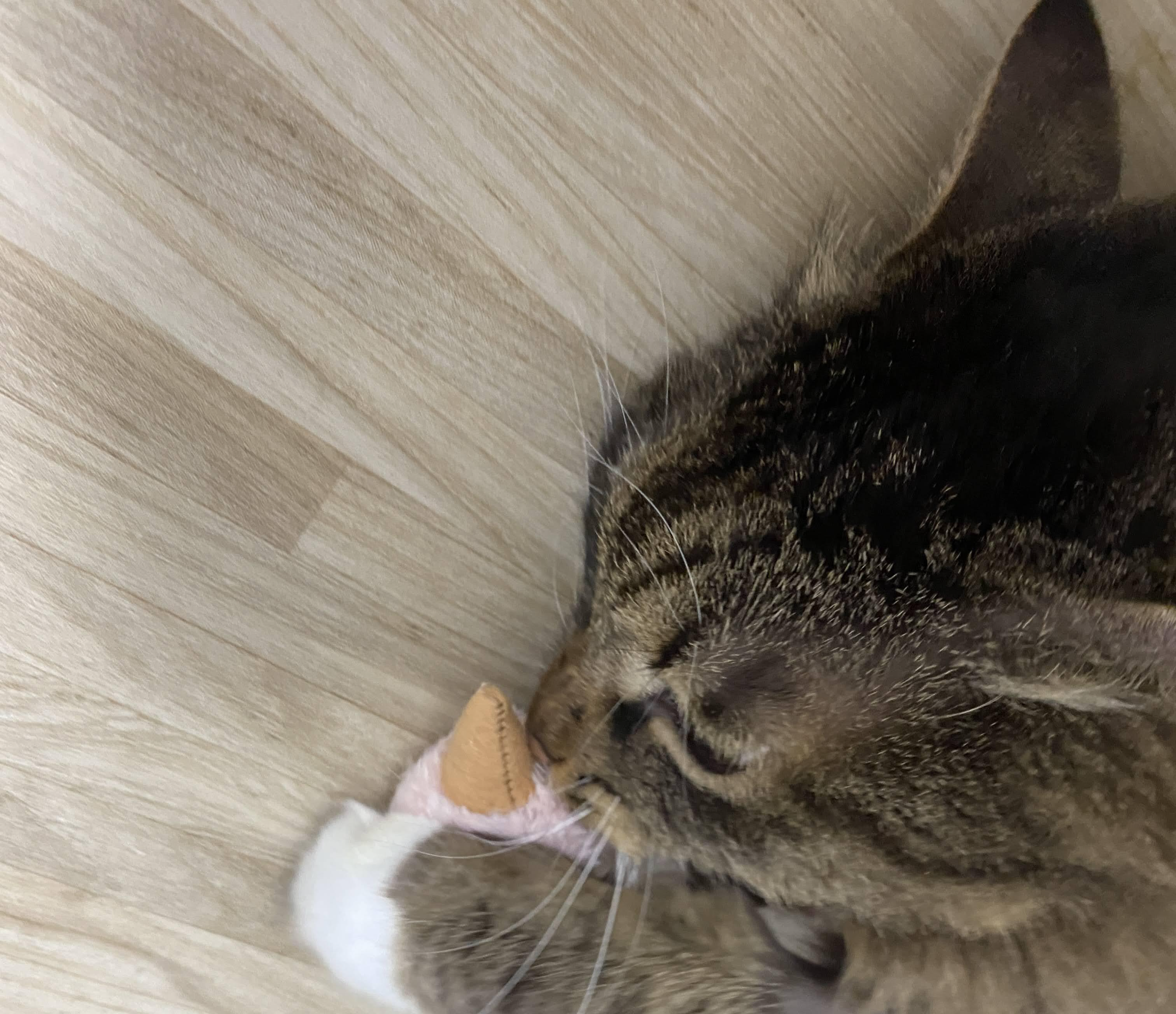 온몸으로 장난감에 비비며 캣닙과 마따따비향을 들이마신다.