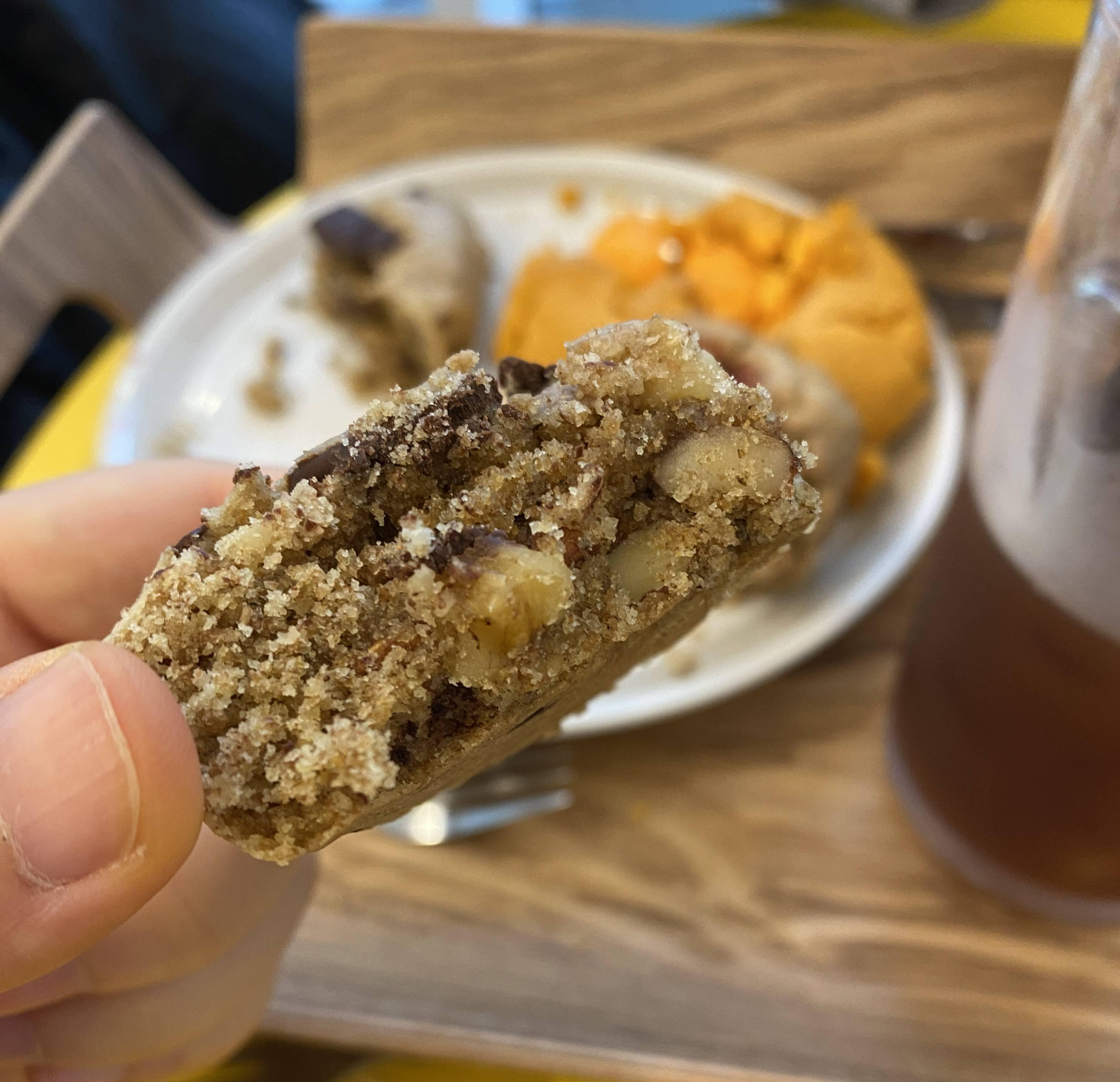 초코월넛은 적당히 달달한 초코칩 쿠키 사이에 호두가 아삭아삭 씹히는 게 고소하고 달달하니 기분 좋은 맛이다!