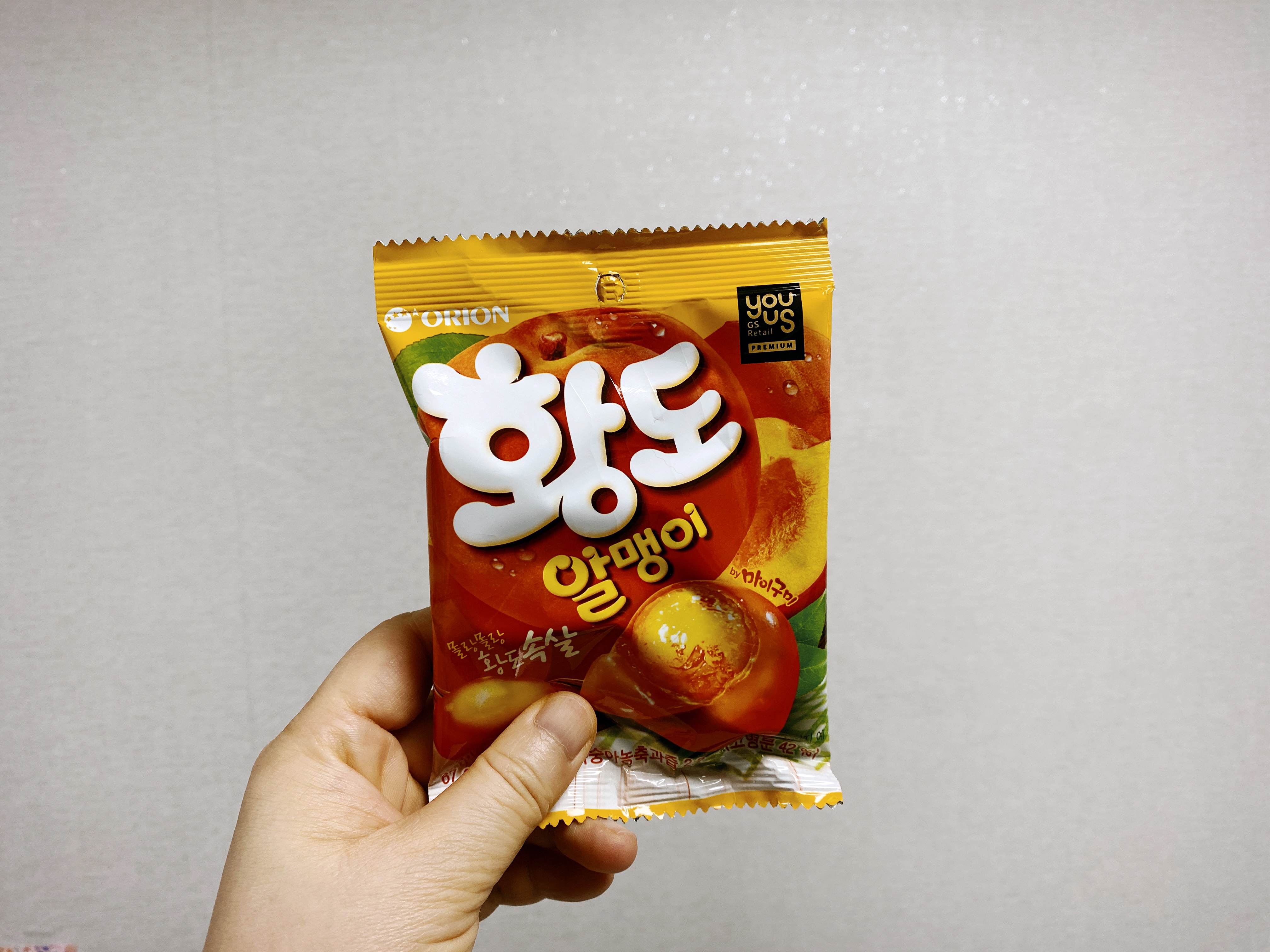복숭아 알맹이도 아니고 꼭 짚어서 황도 알맹이라니 무슨 맛일지 너무 궁금하다.