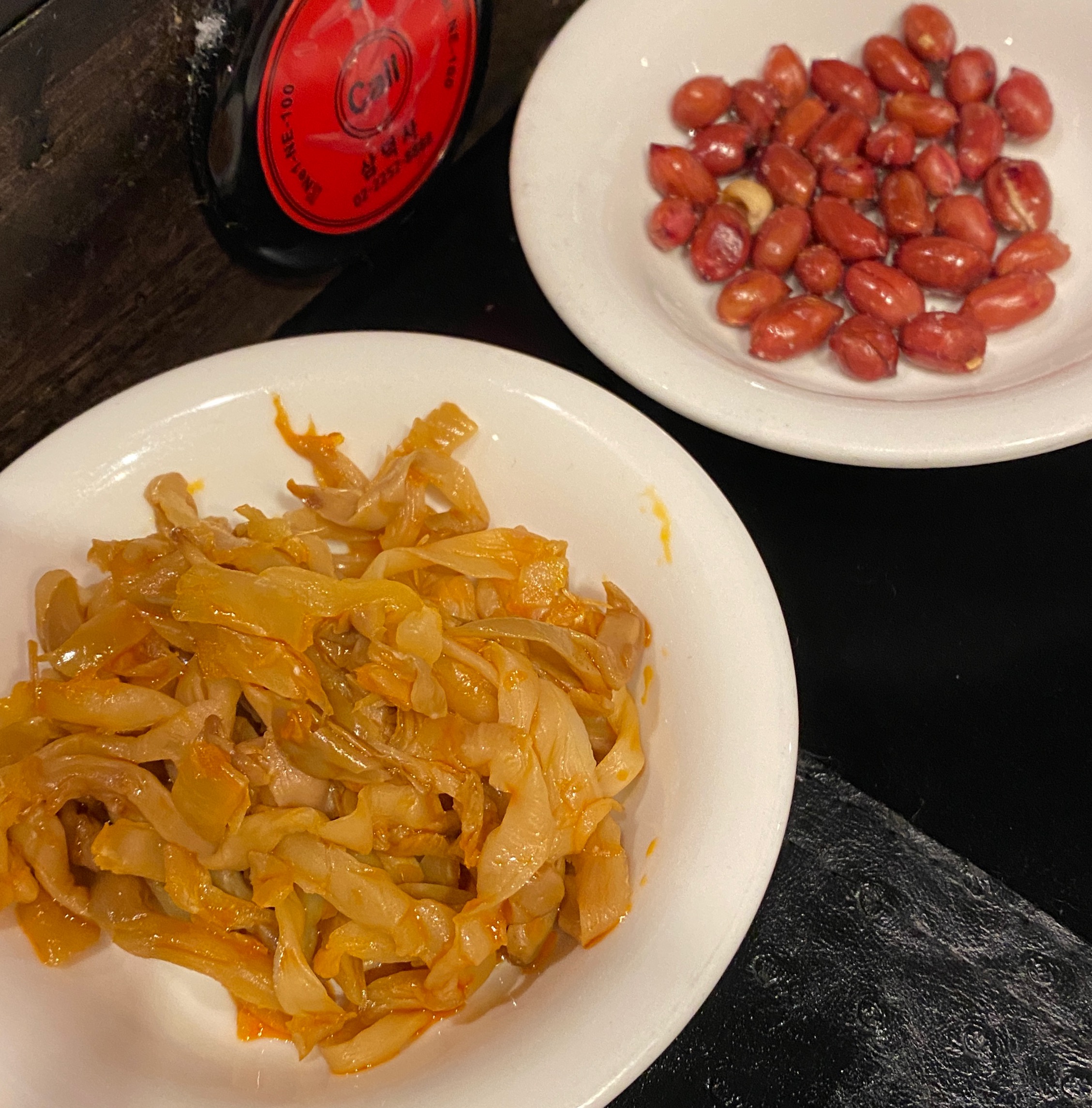 기본 반찬으로는 자차이와 볶은땅콩을 내준다.