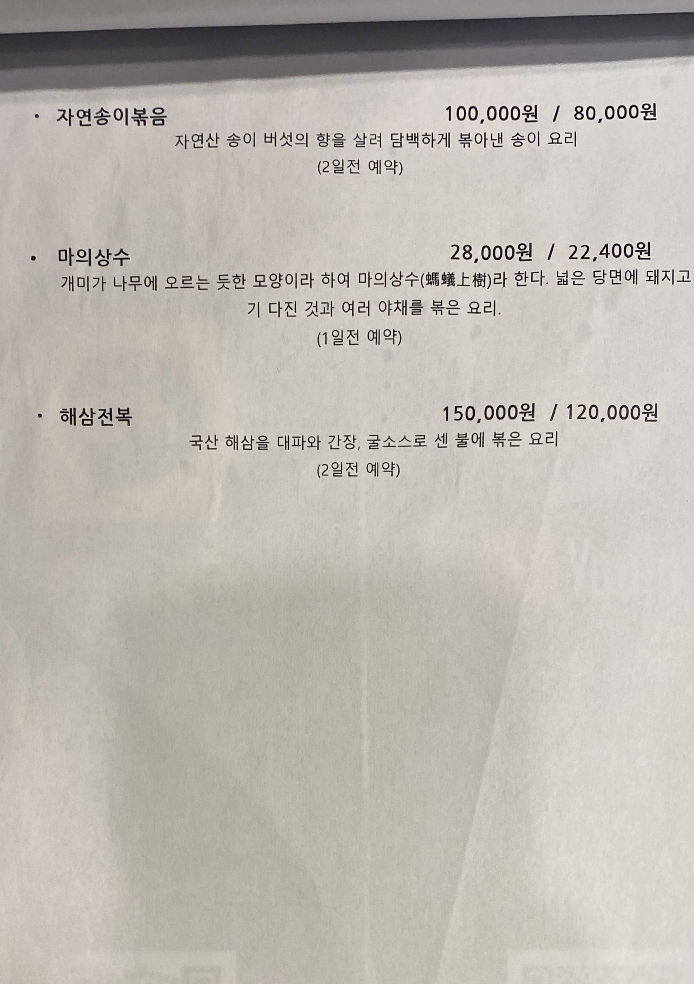 일행을 기다리며 메뉴판을 읽어 나간다.