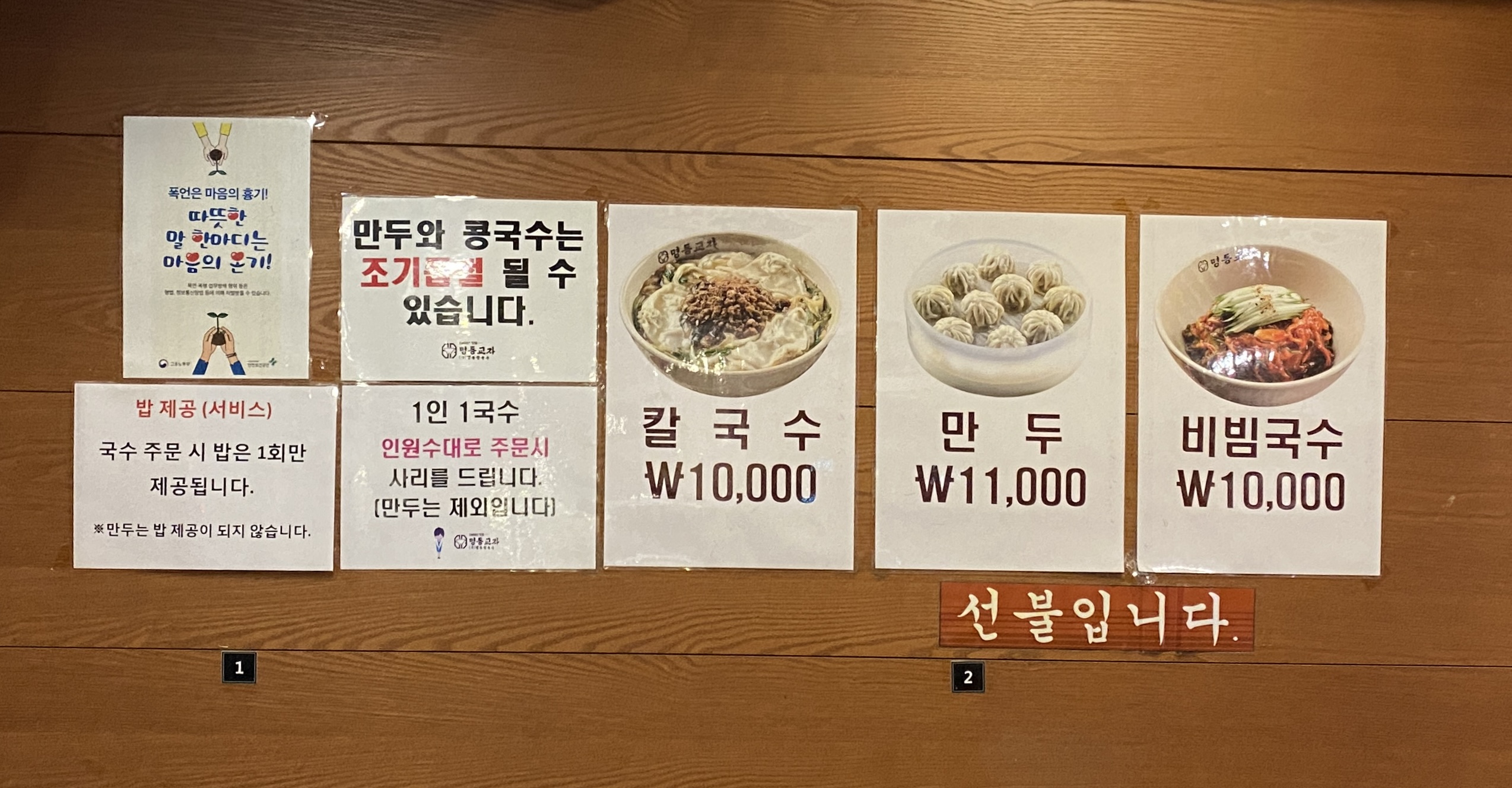 개점 전에 엄청나게 줄이 서 있었지만, 명동교자는 수용 인원이 많아서 열자마자 사람들이 쑤우욱 줄어들었다.