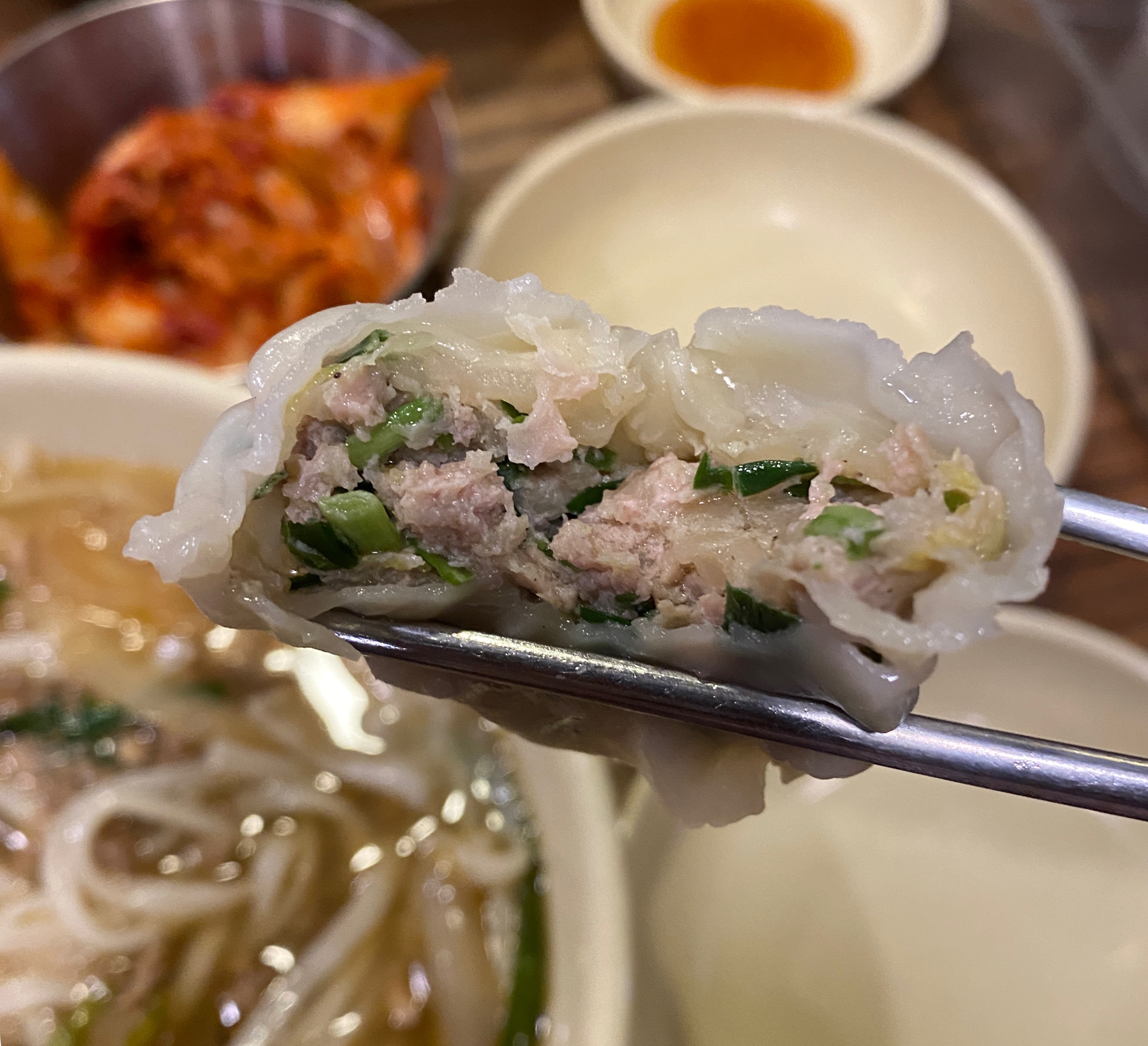 만두는 간이 세지 않으면서 고기 맛이 많이 나는 게 특징이다.