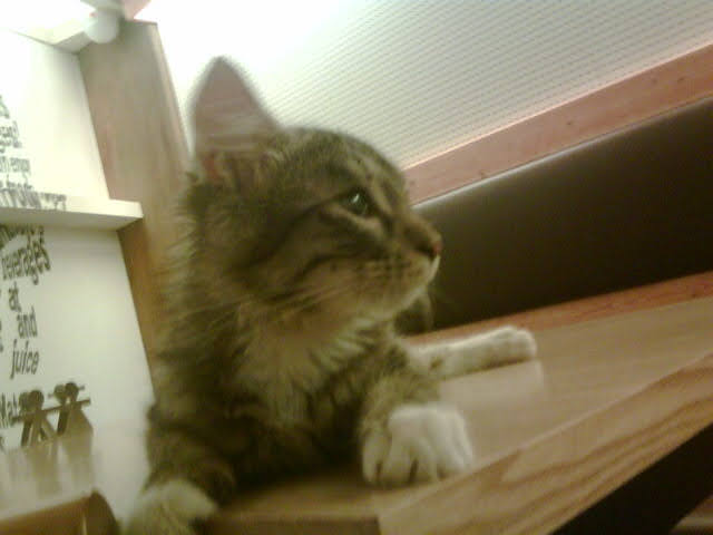 처음 간 카페의 아기 고양이가 너무 귀여워서 직원분께 카페 고양이냐고 물었다. 직원분이 화들짝 놀래며 처음 보는 고양이라고...ㅎㅎ