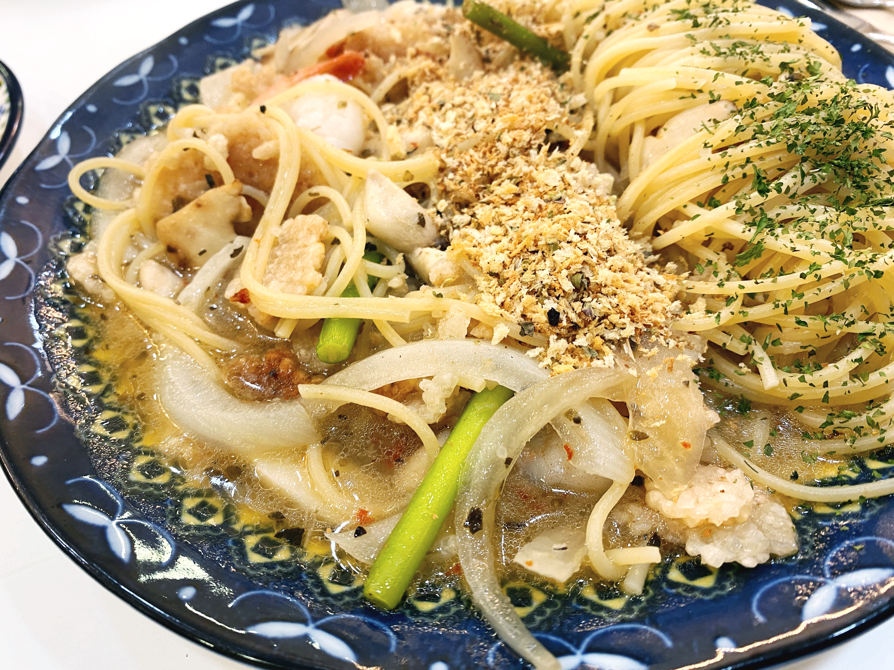 너무 맛있어서 다음 날 바로 또 가서 이번엔 친구의 두 번째 추천 메뉴였던 새우누룽지알리오올리오를 주문했다.