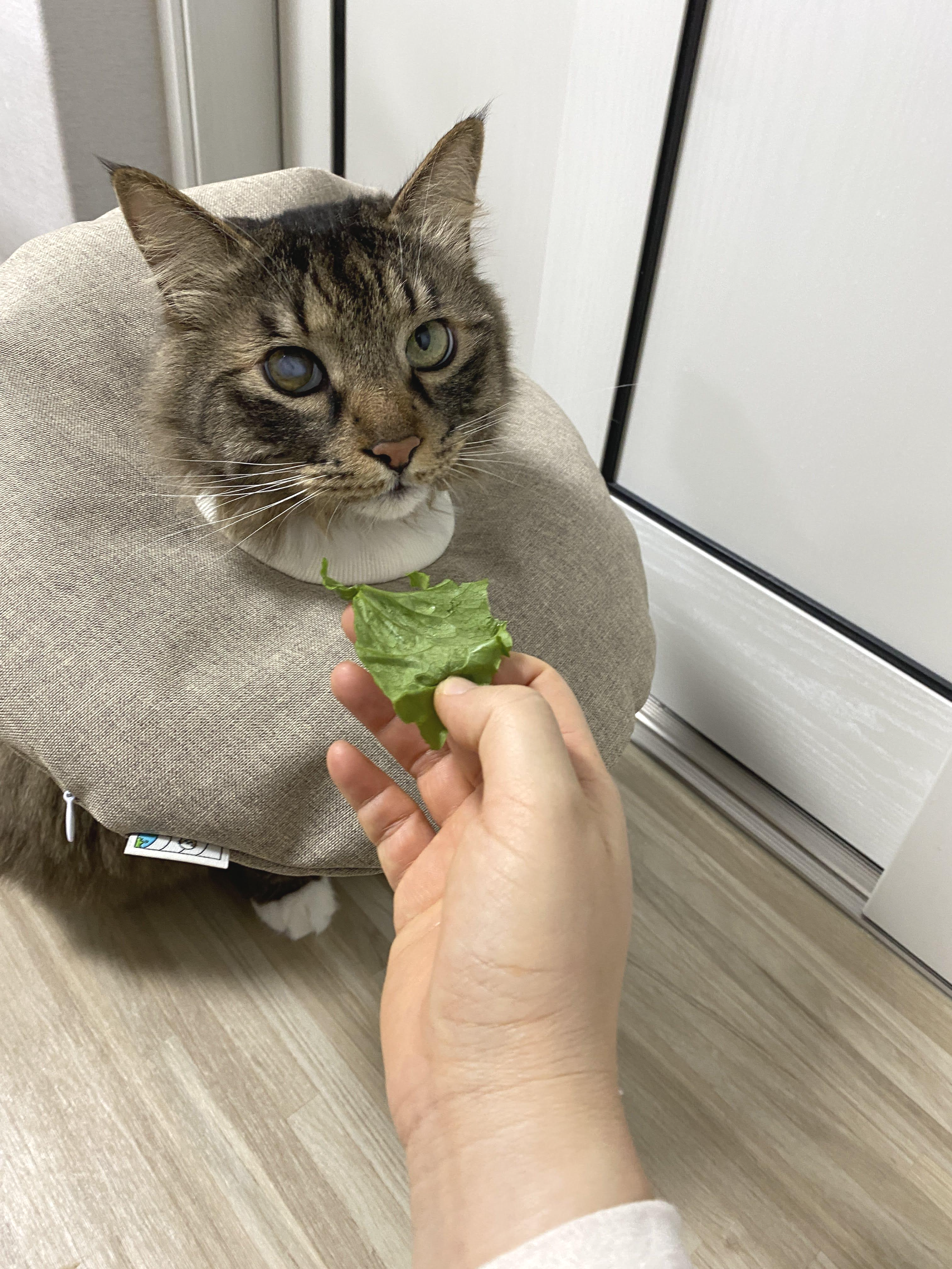 우리 고양이의 경우에는 상추를 먹는다. 자기 이름도 상춘데 상추를 먹어? 많이 먹지는 못하고 한 장 주면 귀퉁이를 조금 먹는 정도지만 꽤 열심히 먹는 편이다. 먹는 요령이 부족해서 많이 먹지 못할 뿐이지, 먹을 때 열정을 보면 혼자 한 꼭지는 너끈하게 먹을 거 같다.