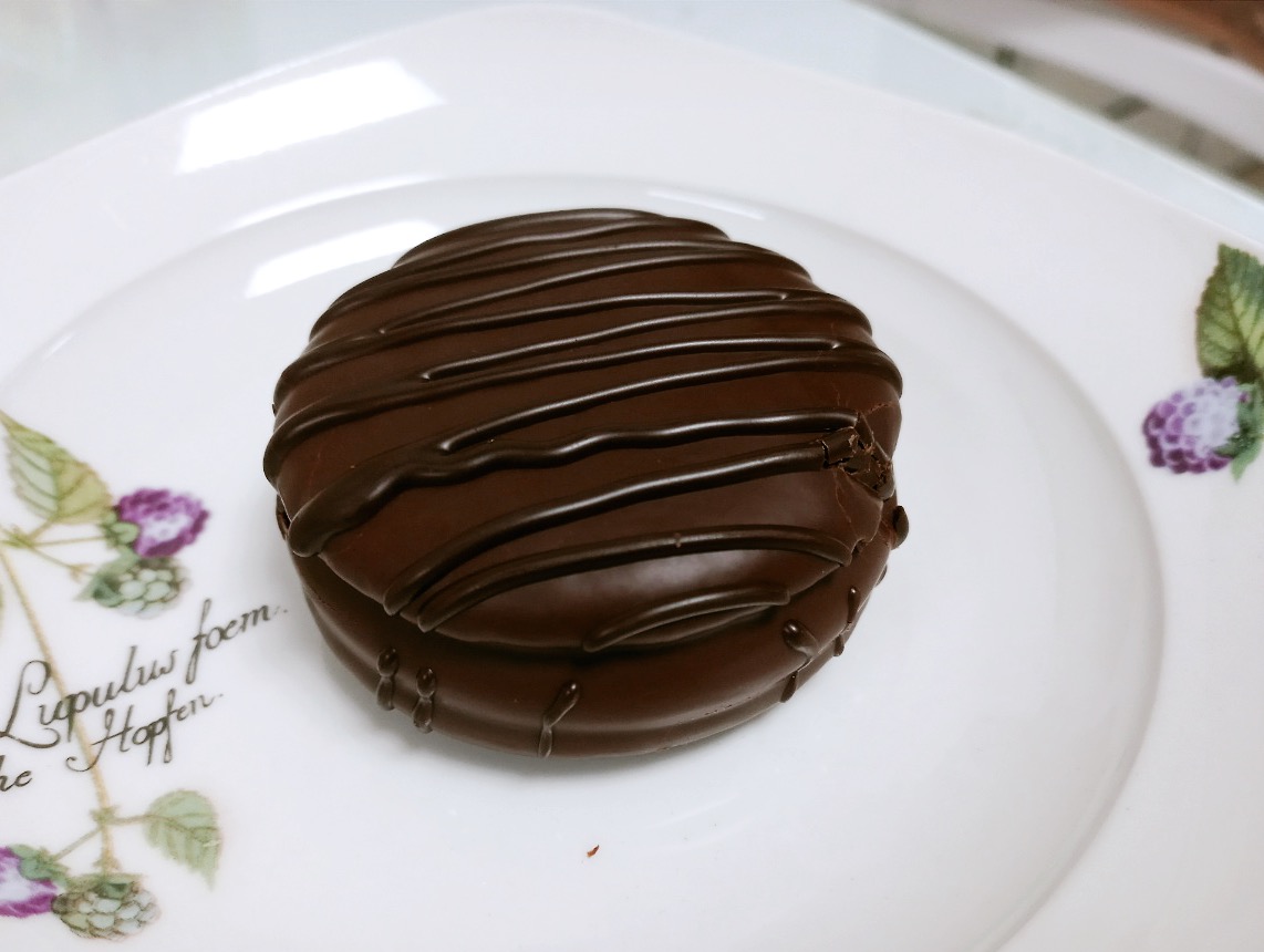 확실히 일반 초코파이보다 도톰하고 초코 코팅 위에 좀 더 진한색이 또 쭉 뿌려져 장식되어 있다.