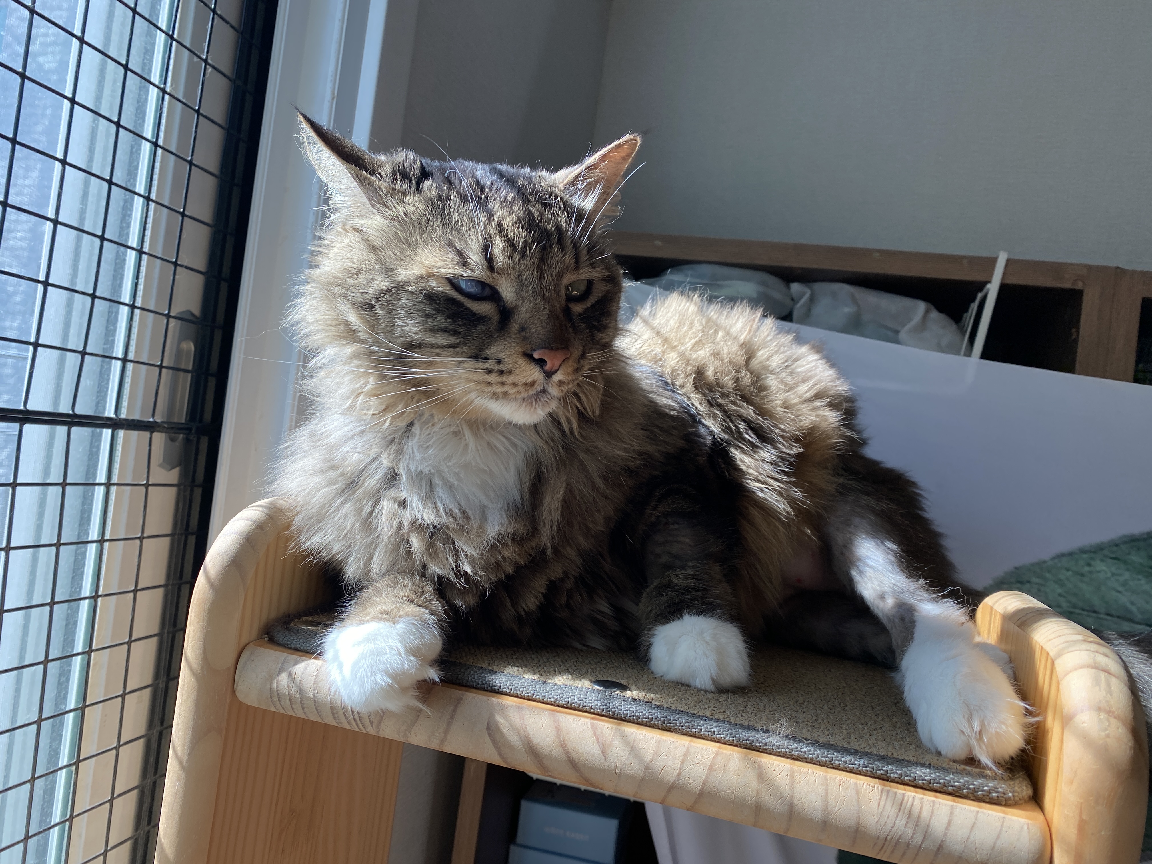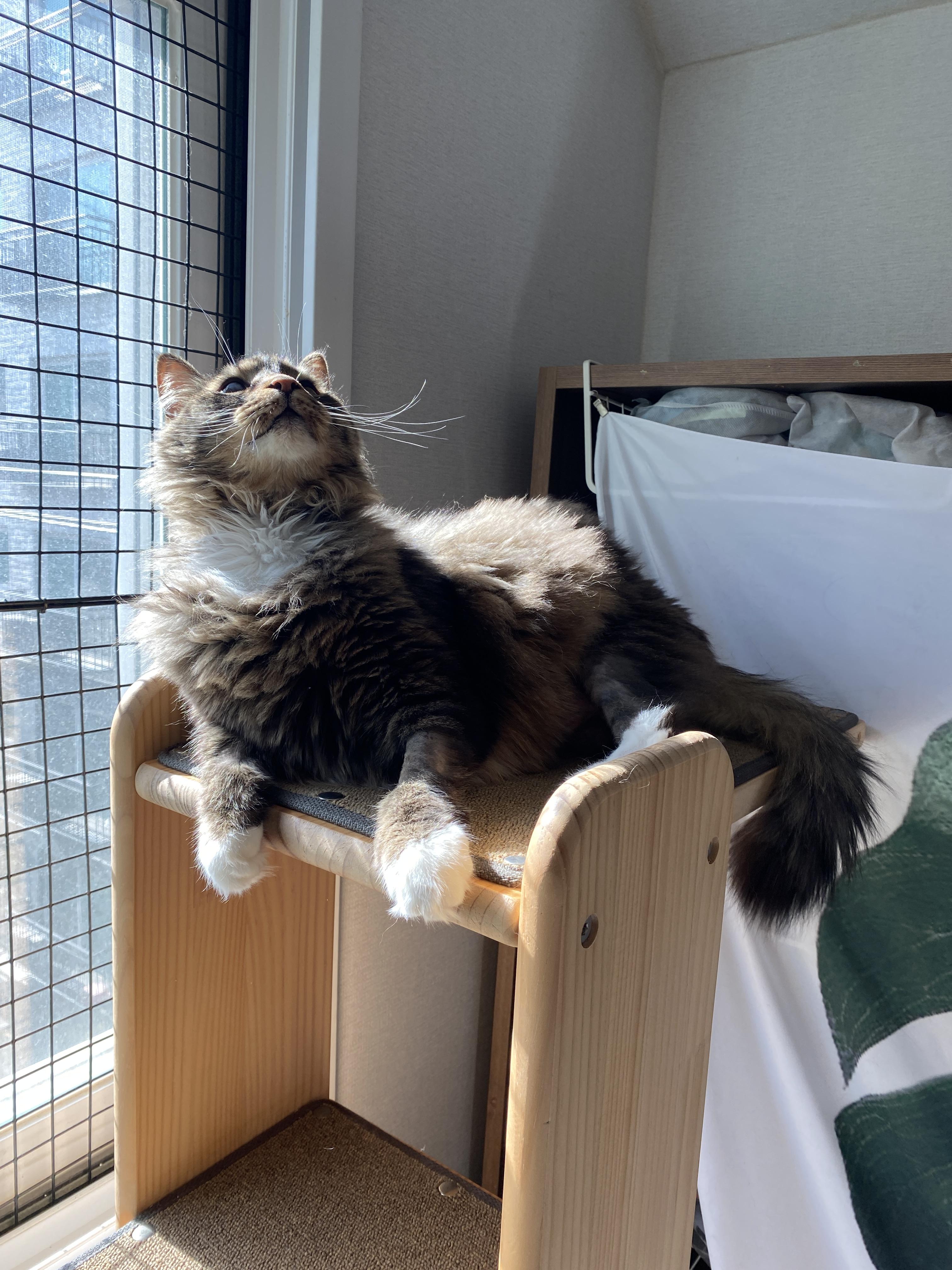 일광욕과 그루밍으로 늘 청결한 향을 유지하는 보송 고양이.