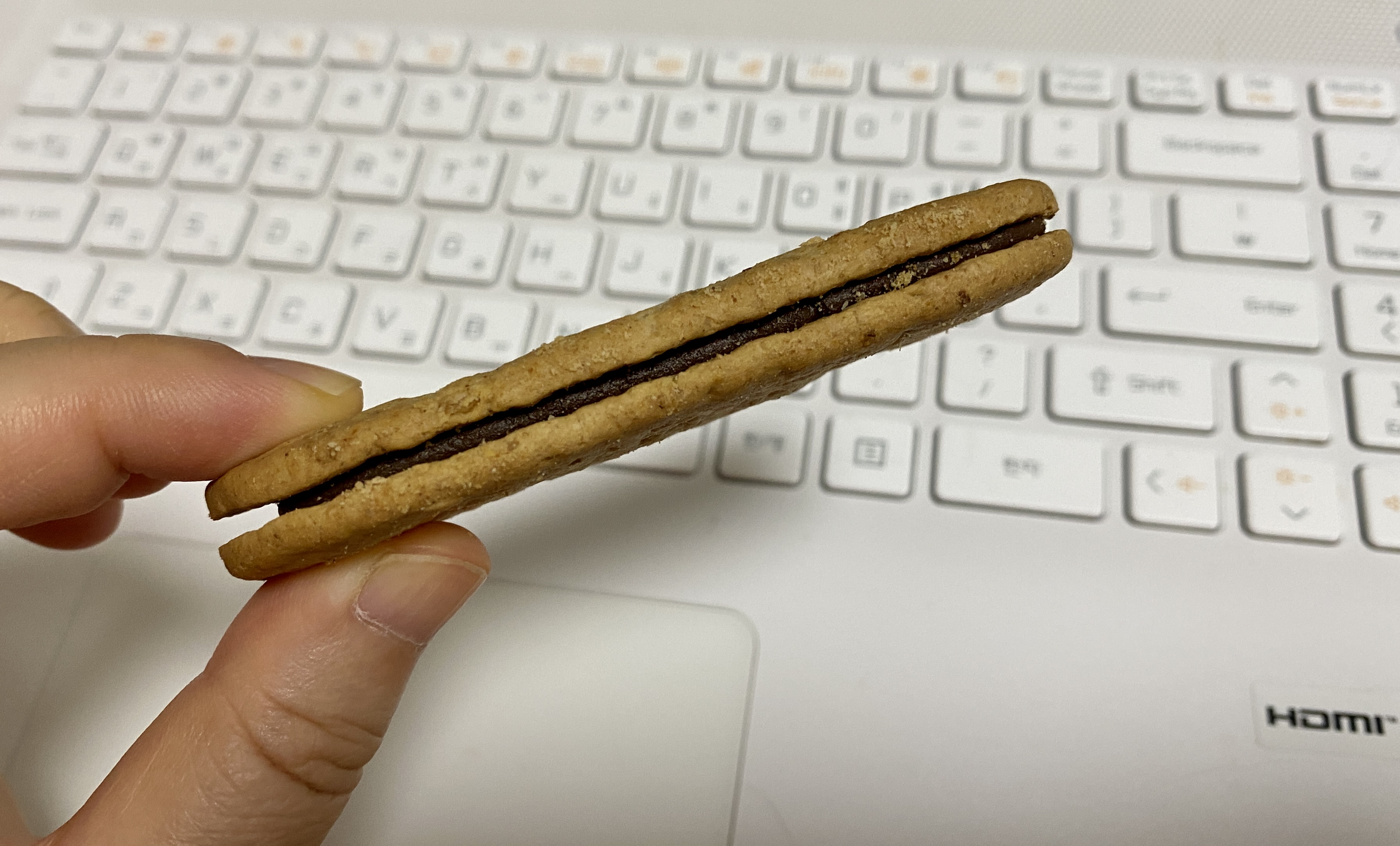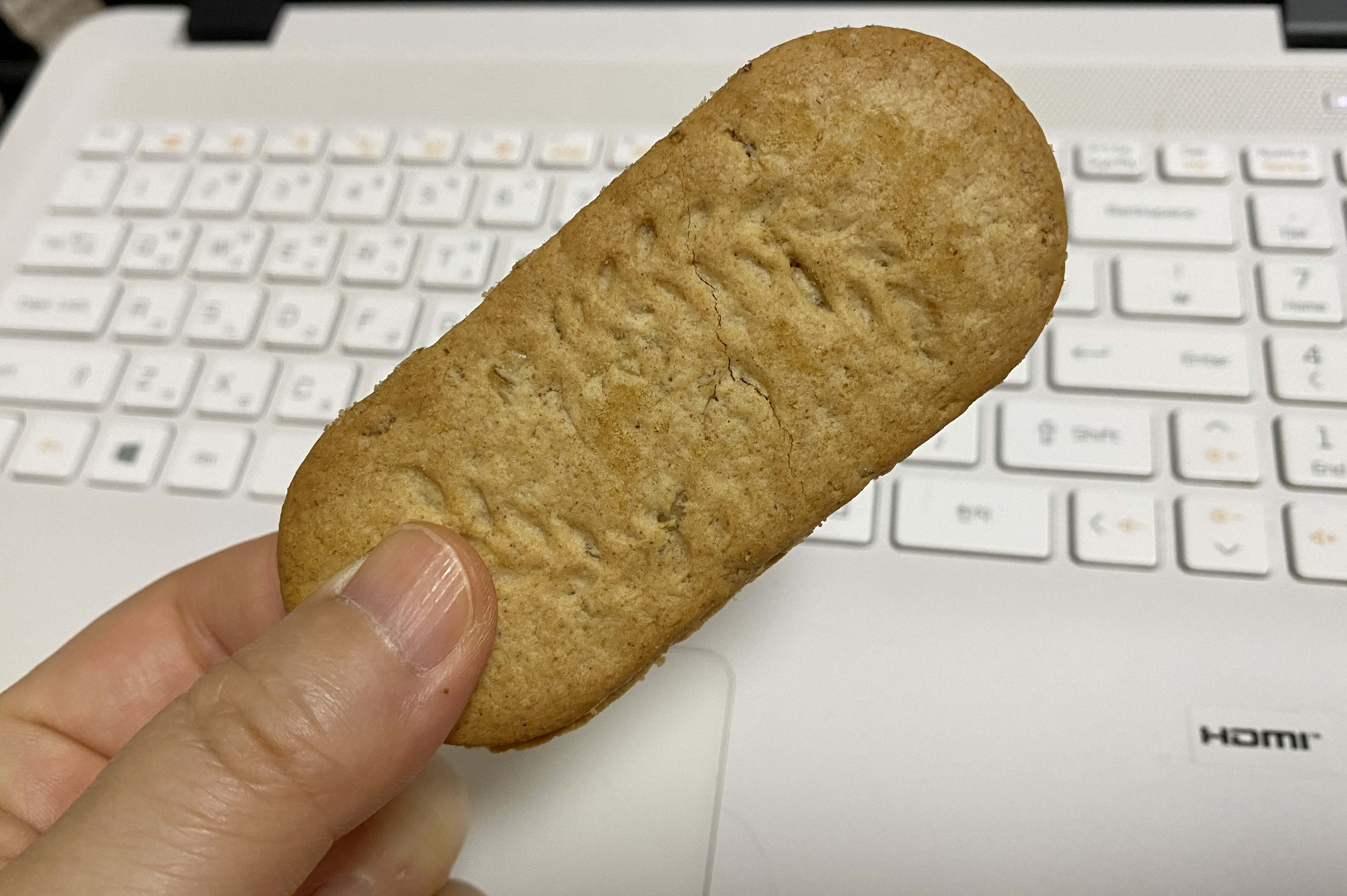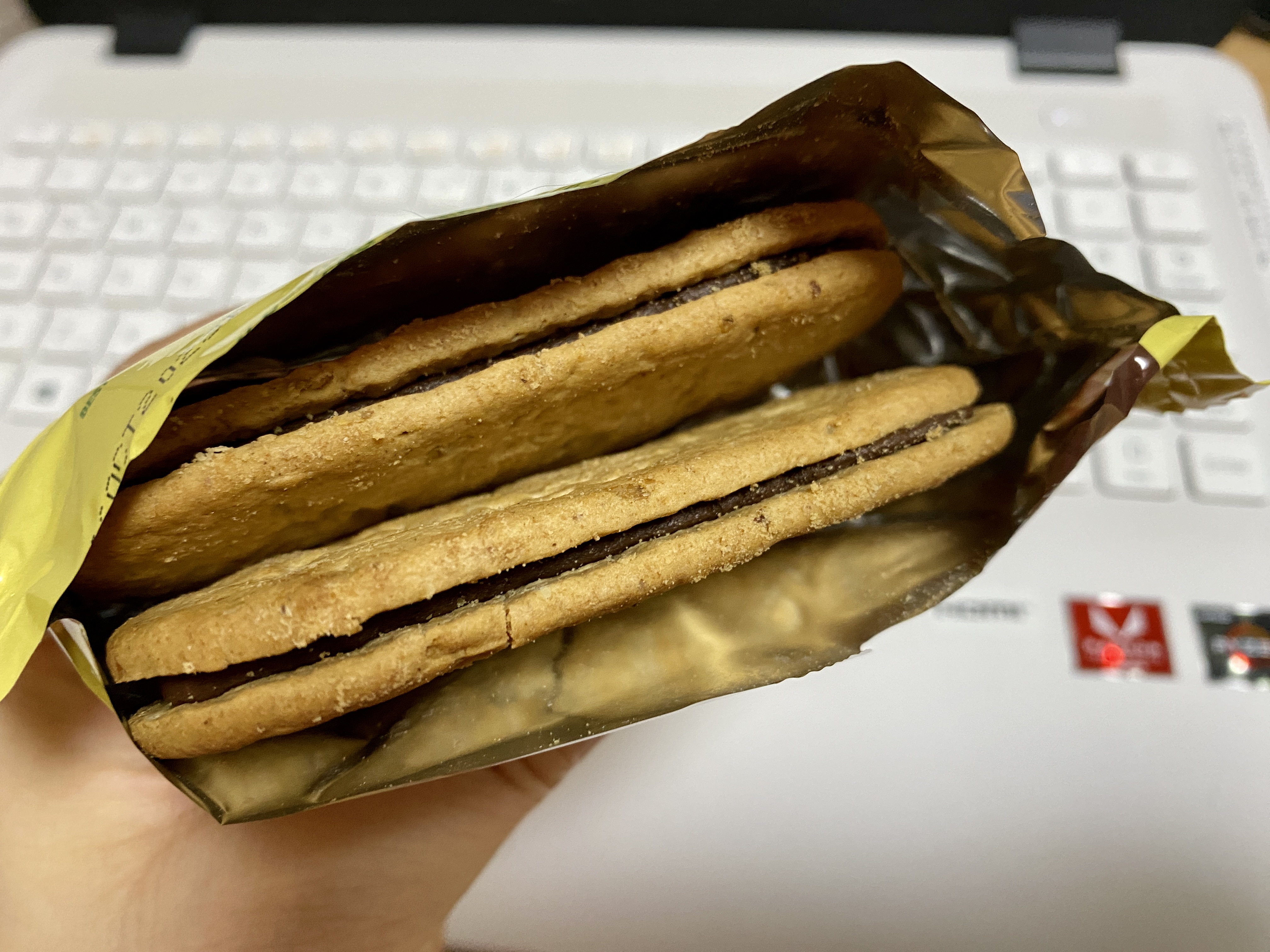 과자 부분에서는 통밀의 맛과 향이 나고, 가운데 든 초코크림은 약간 퍽퍽한 듯싶지만 적당히 달달씁쓸해서 조화롭다.