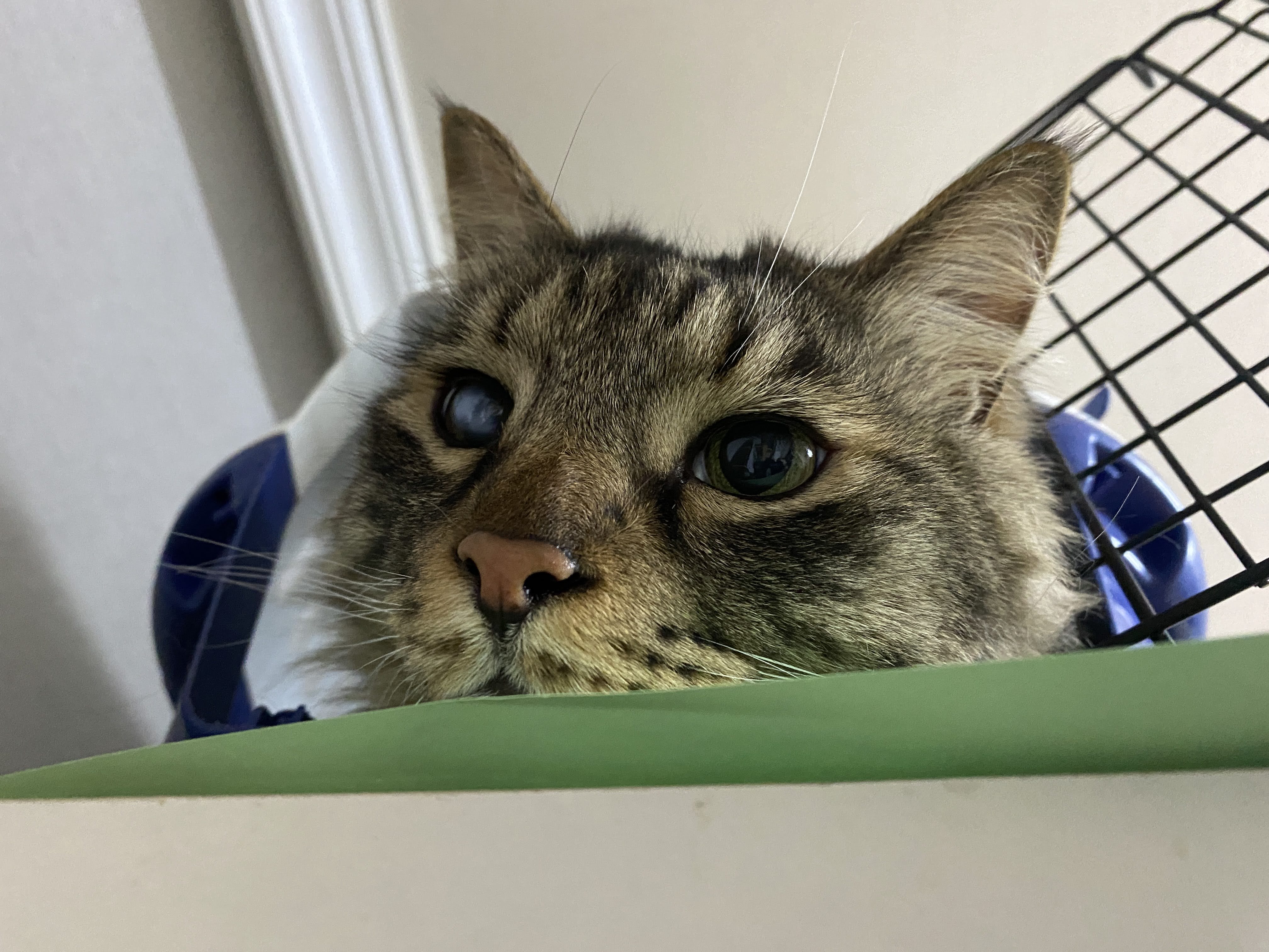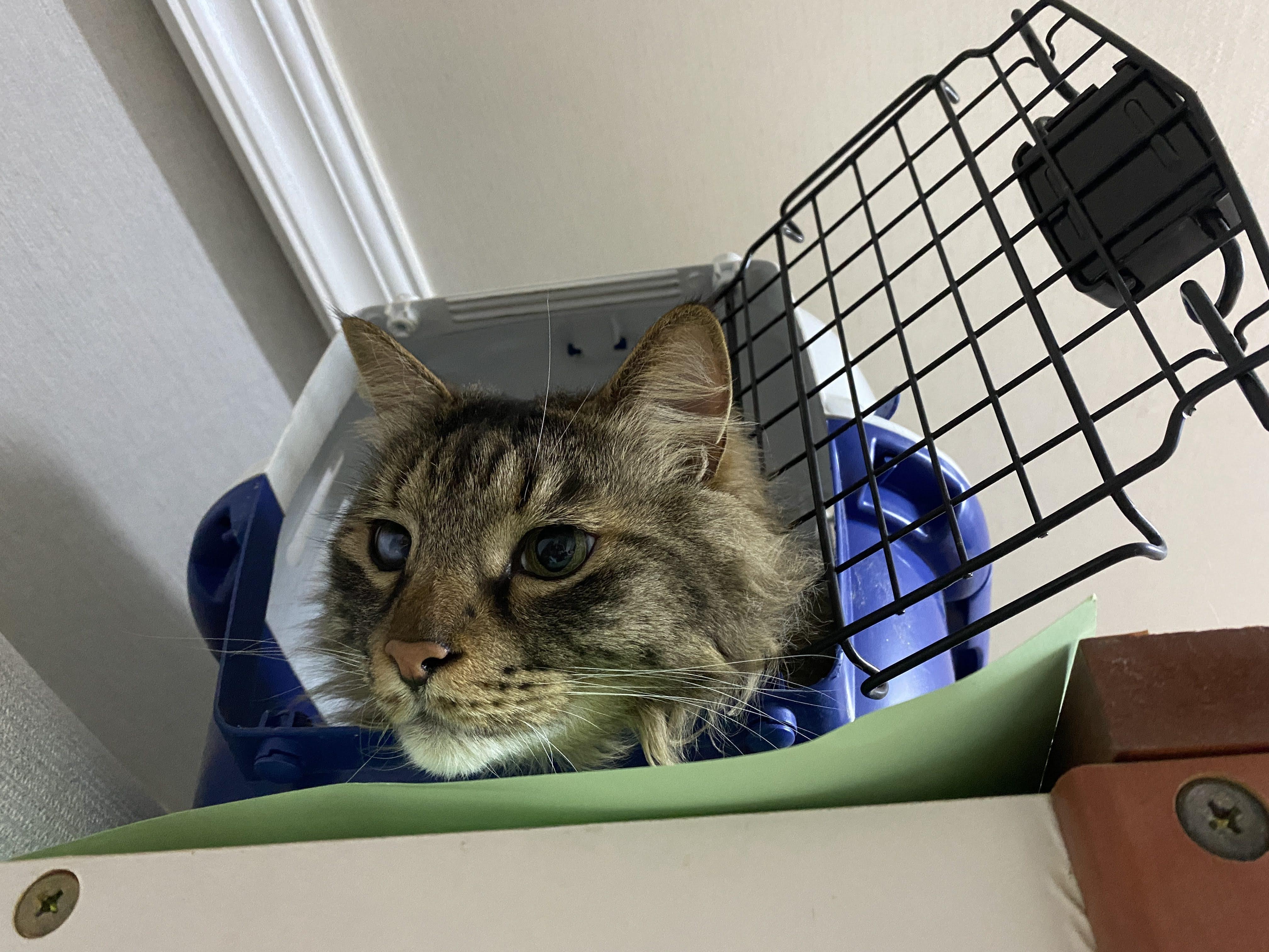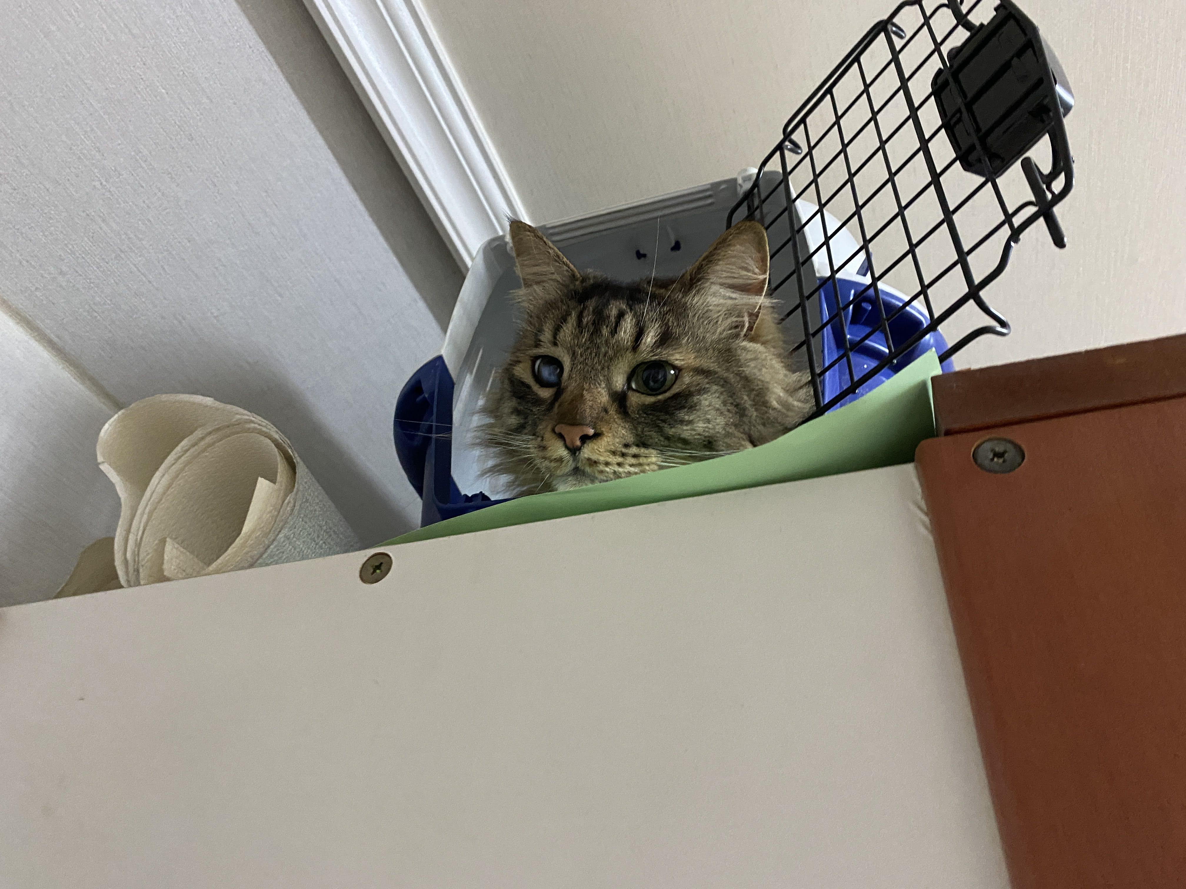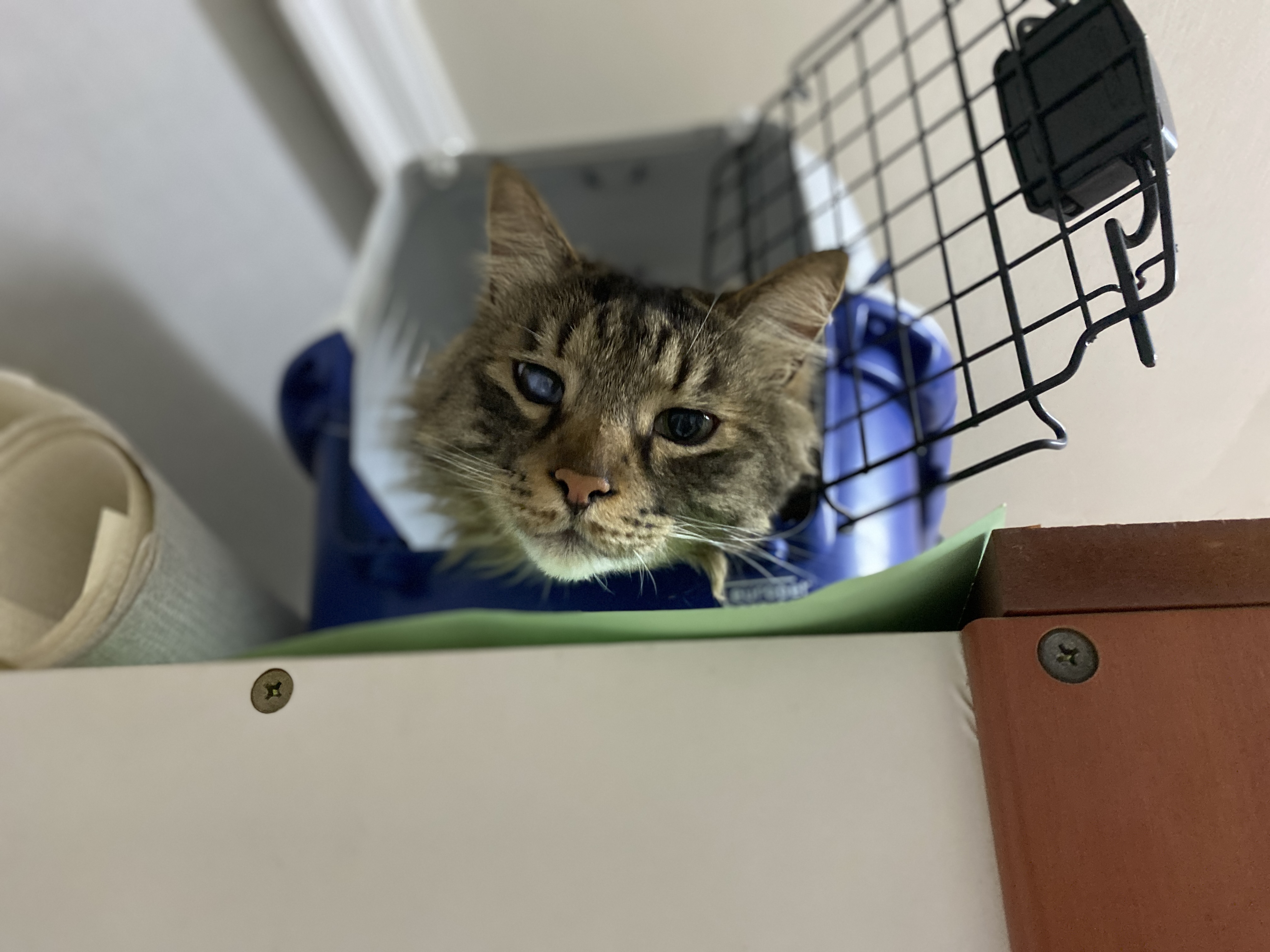 이 케이지는 아주 오래전에 사 둔 케이지인데, 케이지 자체도 무거운데 우리 고양이까지 들어가면 도저히 들 수 없어서 그냥 옷장 위에 방치하고 있다.