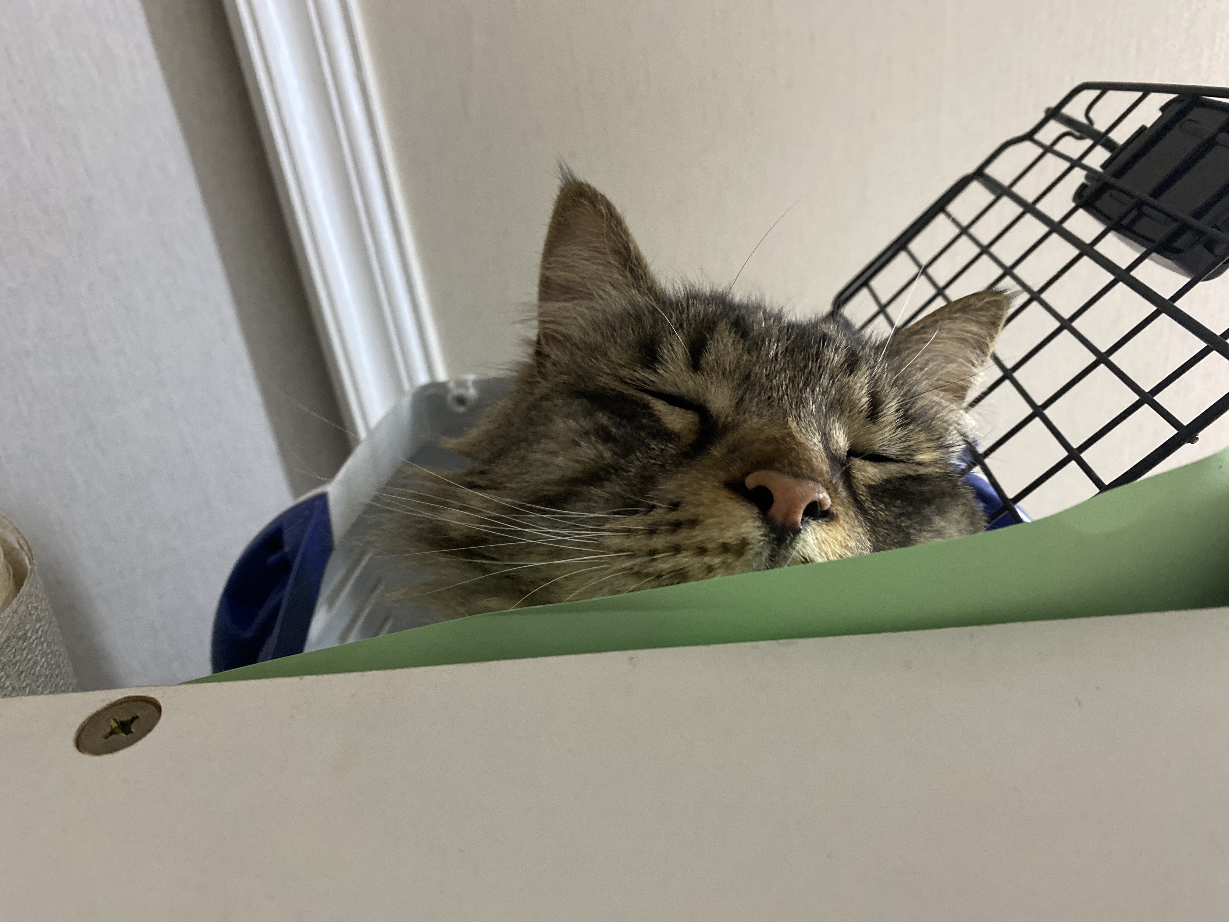 저 케이지는 창문이랑 높이가 맞아서 창문을 열어 두면 바람이 시원하게 들이치는 자리라서 고양이가 더욱 좋아하는 것 같다. 에어컨 바람이 바로 닿는 자리이기도 하고.