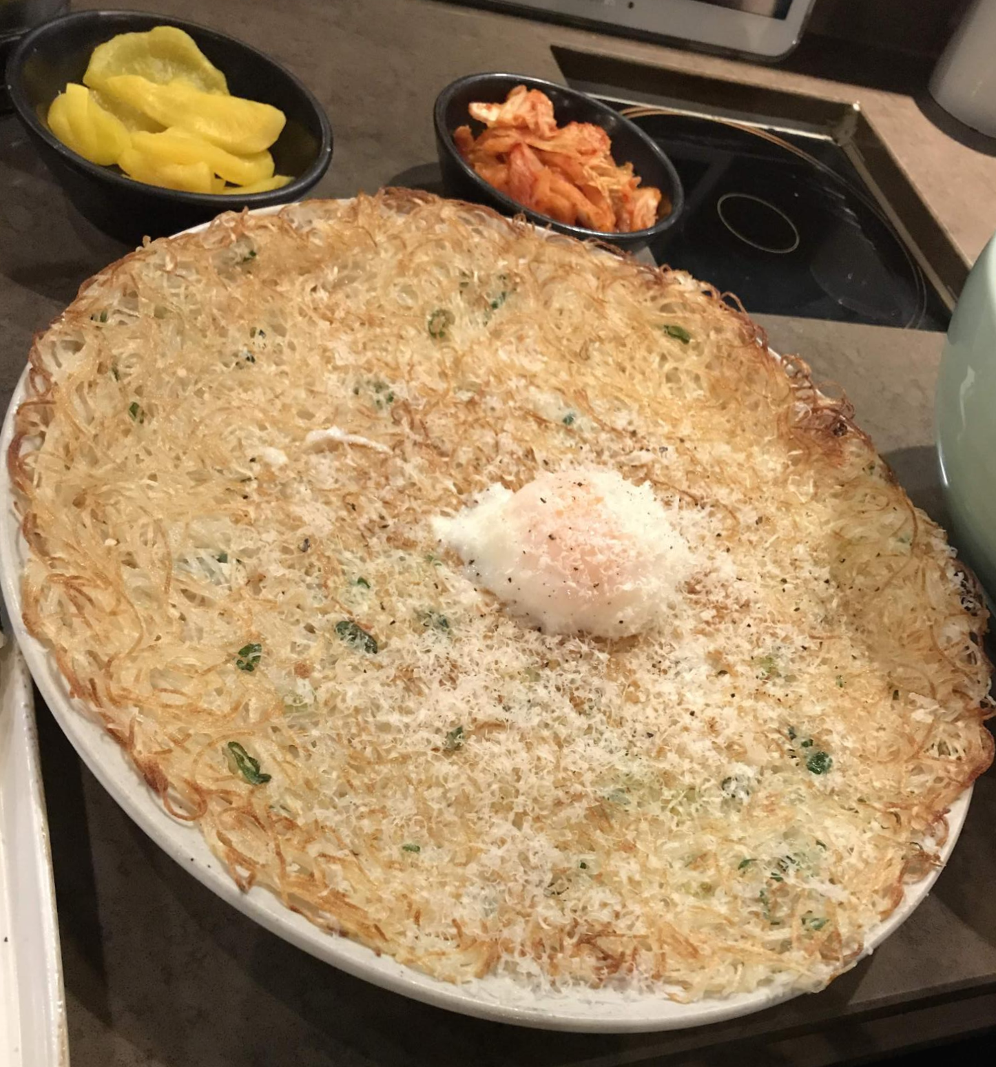 가장 좋았던 감자전이다. 위에 하얗게 뿌려진 건 치즈다. 바삭하게 구운 감자전인데 진짜 바삭하고 감자향이 잘 살아있어서 맛있다. 꽤 양도 많고 맛나서 감자전만 따로 사서 포장하고 싶을 정도였다.