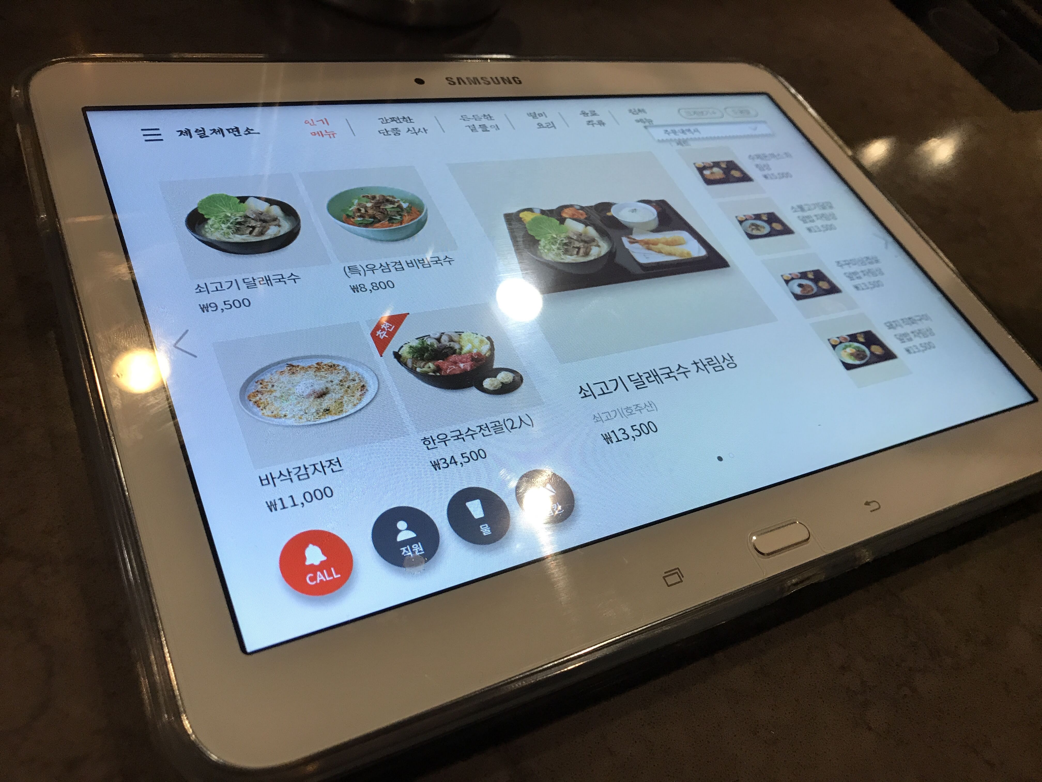 들어갔더니 이렇게 태블릿으로 주문을 하는 시스템이였다. 메뉴판이 아니라 태블릿이라니 제법 신선하다. 하지만 잘 모르는 사람은 당황하겠다.