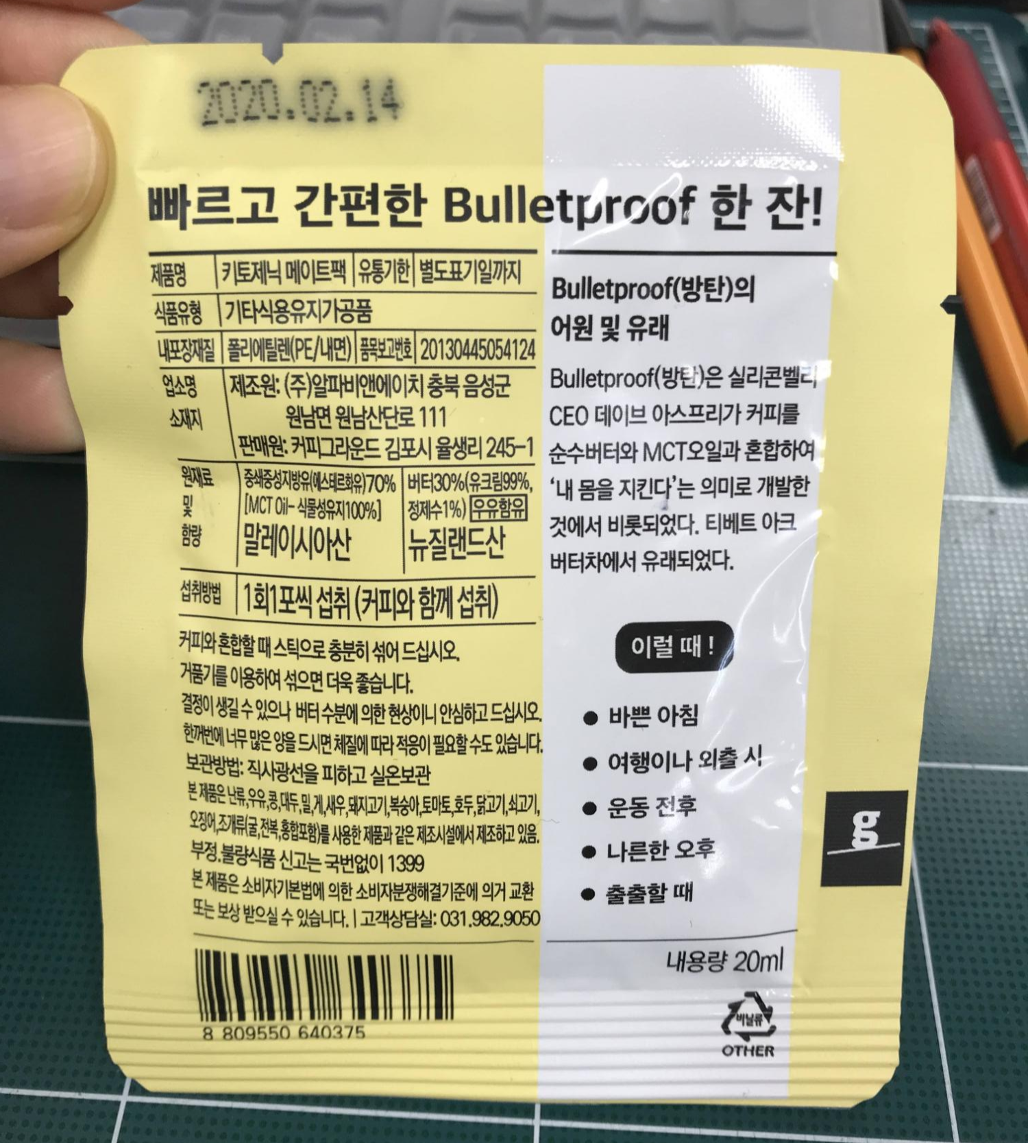 방탄커피의 유래도 써 있다. 간헐적 단식일 때 단식을 거의 깨지 않으면서 에너지를 공급 받을 수 있다는데 과연?!