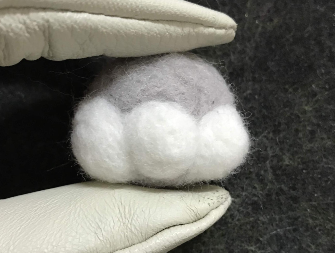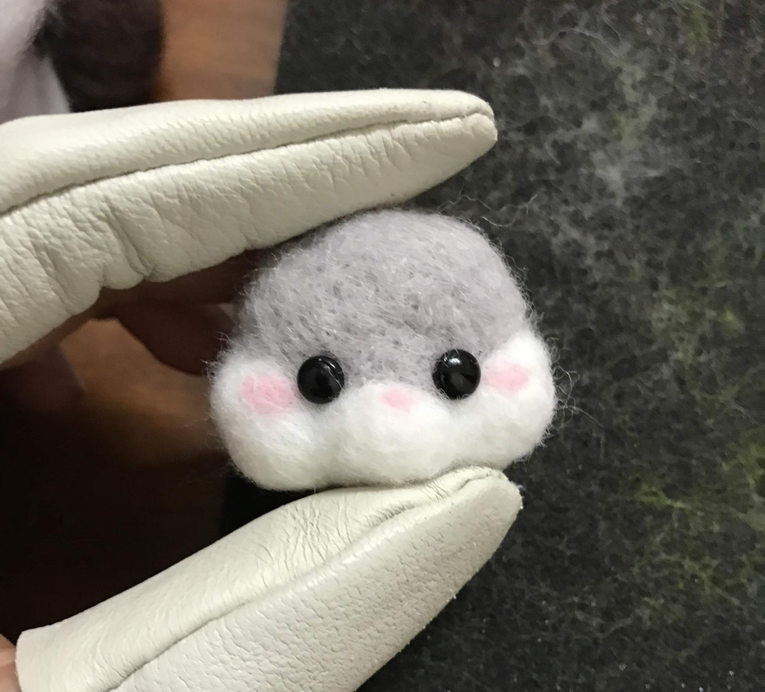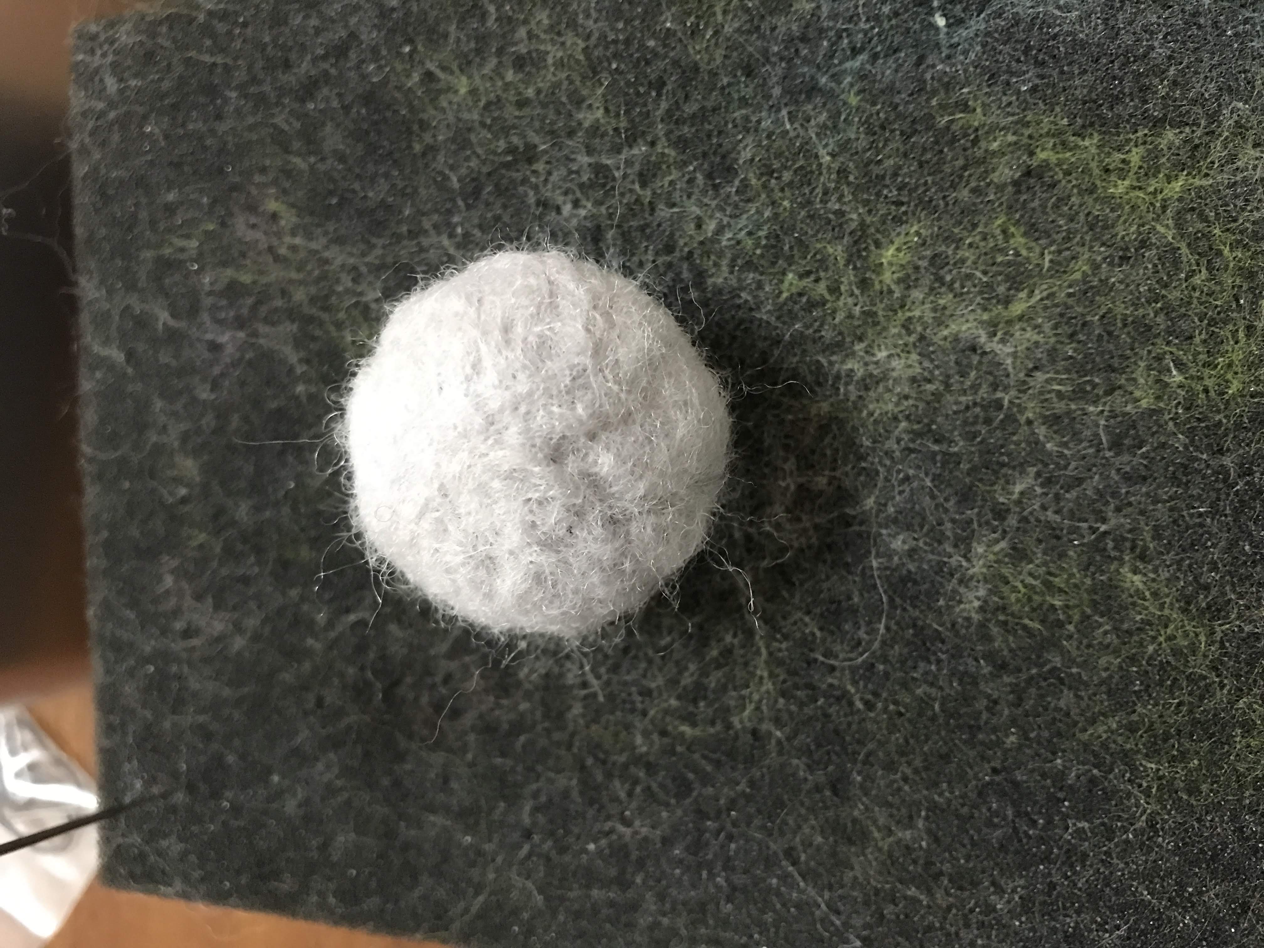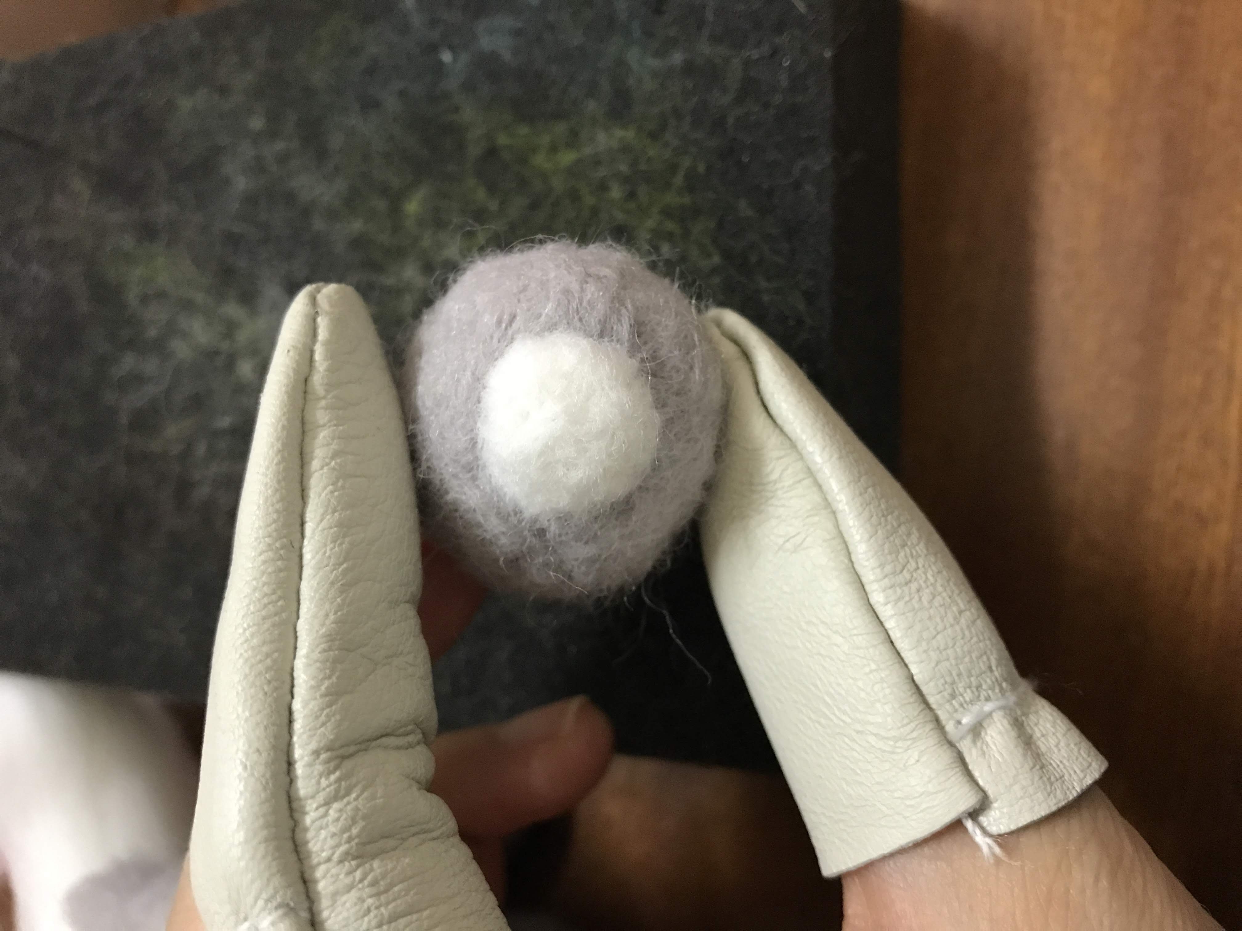 먼저 머리가 될 동그라미를 회색털로 만든다. 양모 질감이 좀 버석버석하다고 해야 되나 느낌이 별로다. 그런데 뭉쳐지기는 잘 뭉쳐지는데 뭔가 석연찮은 느낌이다.