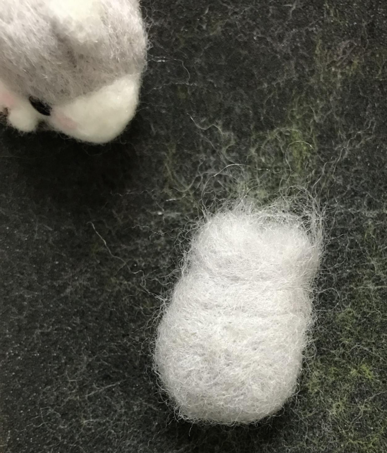 밑에 조그맣게 하얀색 양모를 뭉쳐서 발을 만들었다. 발을 이런 식으로 대충 만들 수 있다니 아주 좋았다.