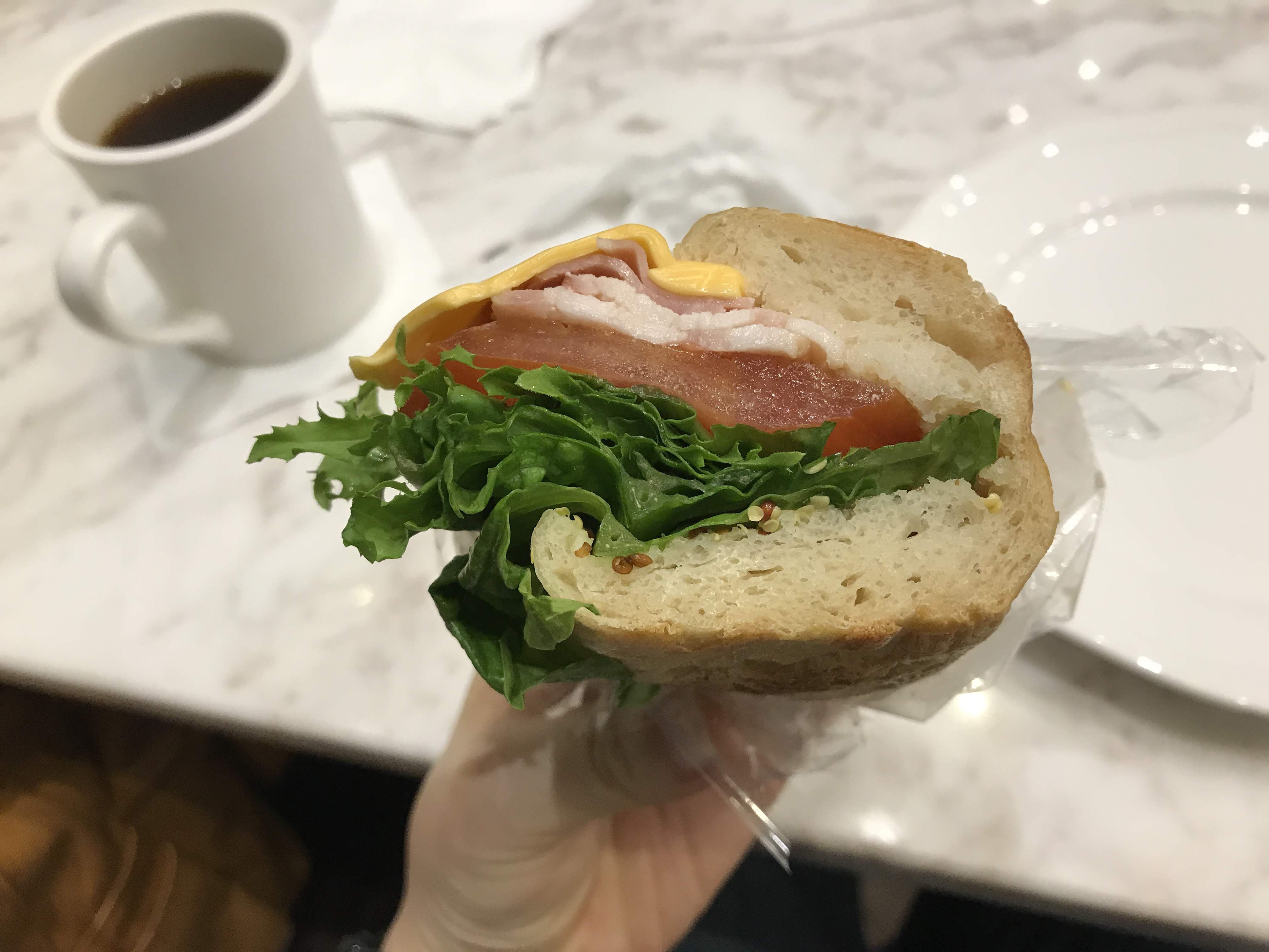 이날은 샌드위치랑 커피를 시켰다. 반쪽 샌드위치는 3천 얼마였다. 커피는 그냥 아메리카노.