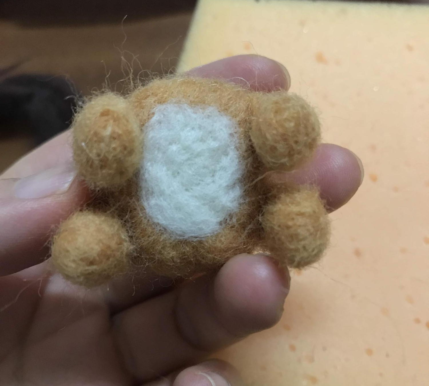 북돋을 때는 그냥 흰색 양모를 적당히 뭉쳐서 콩콩콩 바늘로 찌르면서 모양을 잡으면 된다.