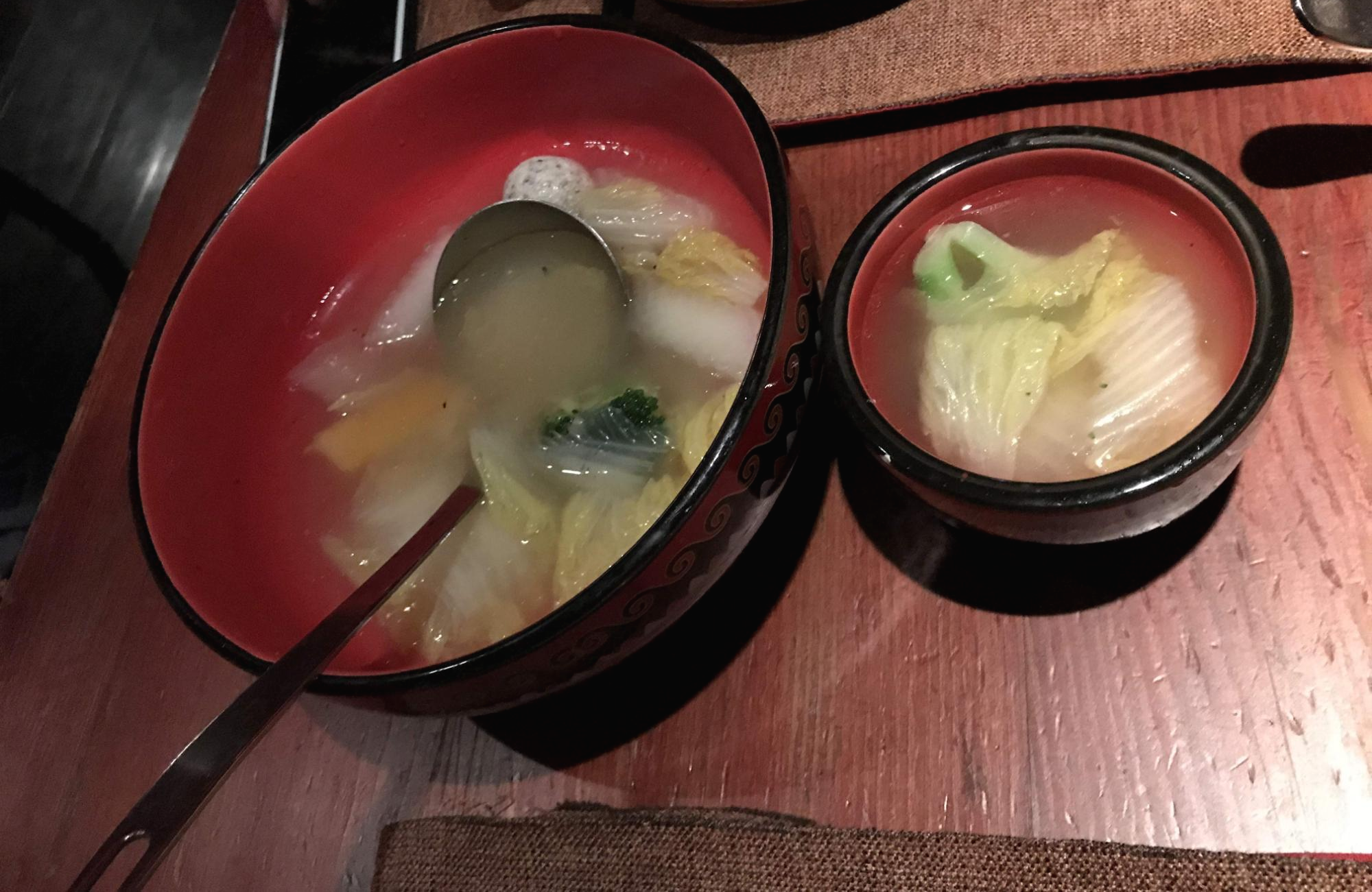 이건 추워서 시킨 탕이다. 들깨를 갈아서 뭉친 것 같은 완자가 들어있는데 식감도 맛도 특이했다. 브로콜리, 감자 등이 들어 있고 닭곰탕 국물맛이 난다.