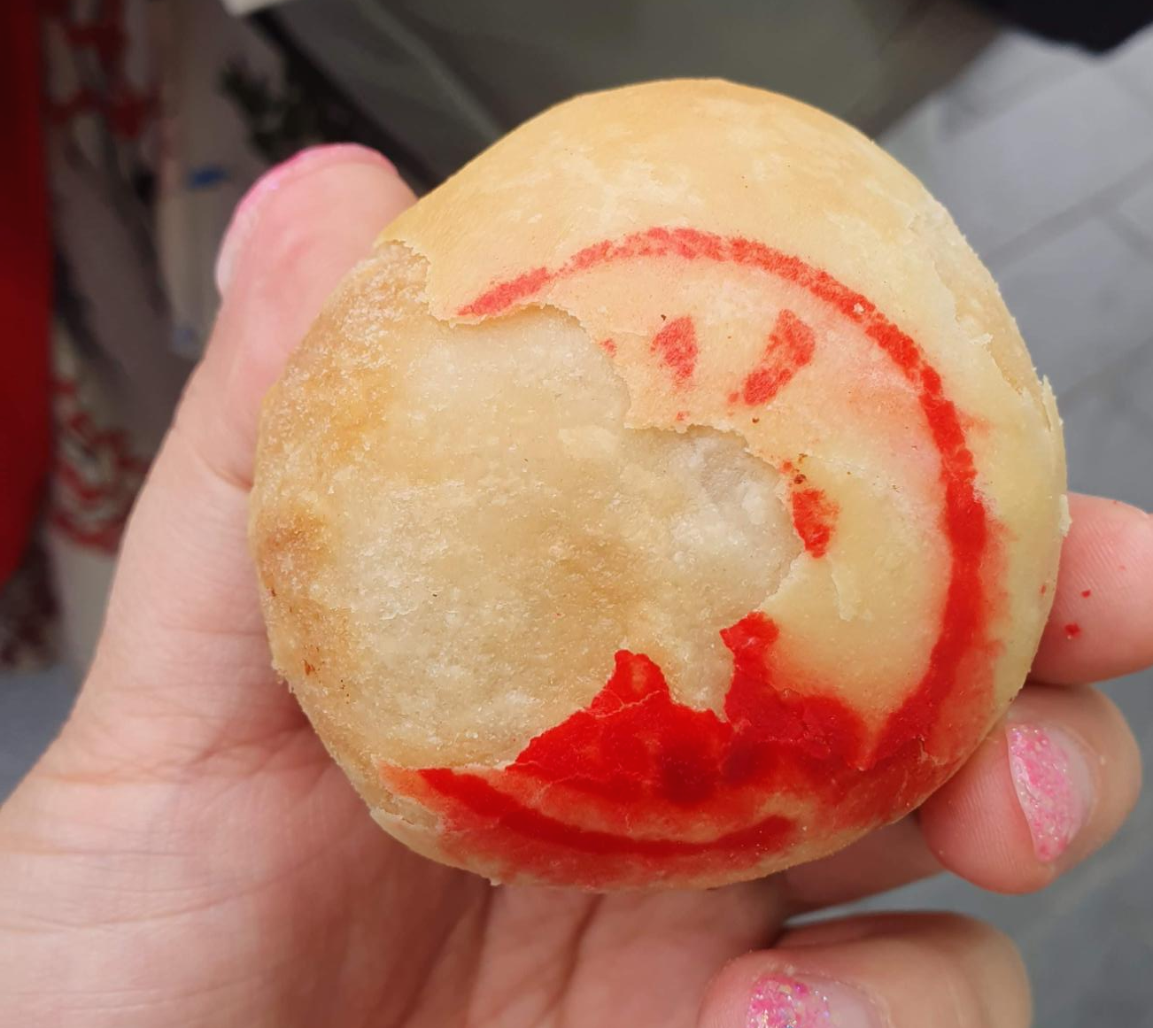 무엇인지도 모르고 사람들이 줄 서서 사 먹길래 사 먹었다. 종류도 3개길래 일단 3개 사서 랜덤으로 나눠 먹었다. 깨가 붙은 빵은 죽순이 들었고 나머지 두 개는 고기가 들어 있었다. 배가 고파서 그런지 맛있었다.