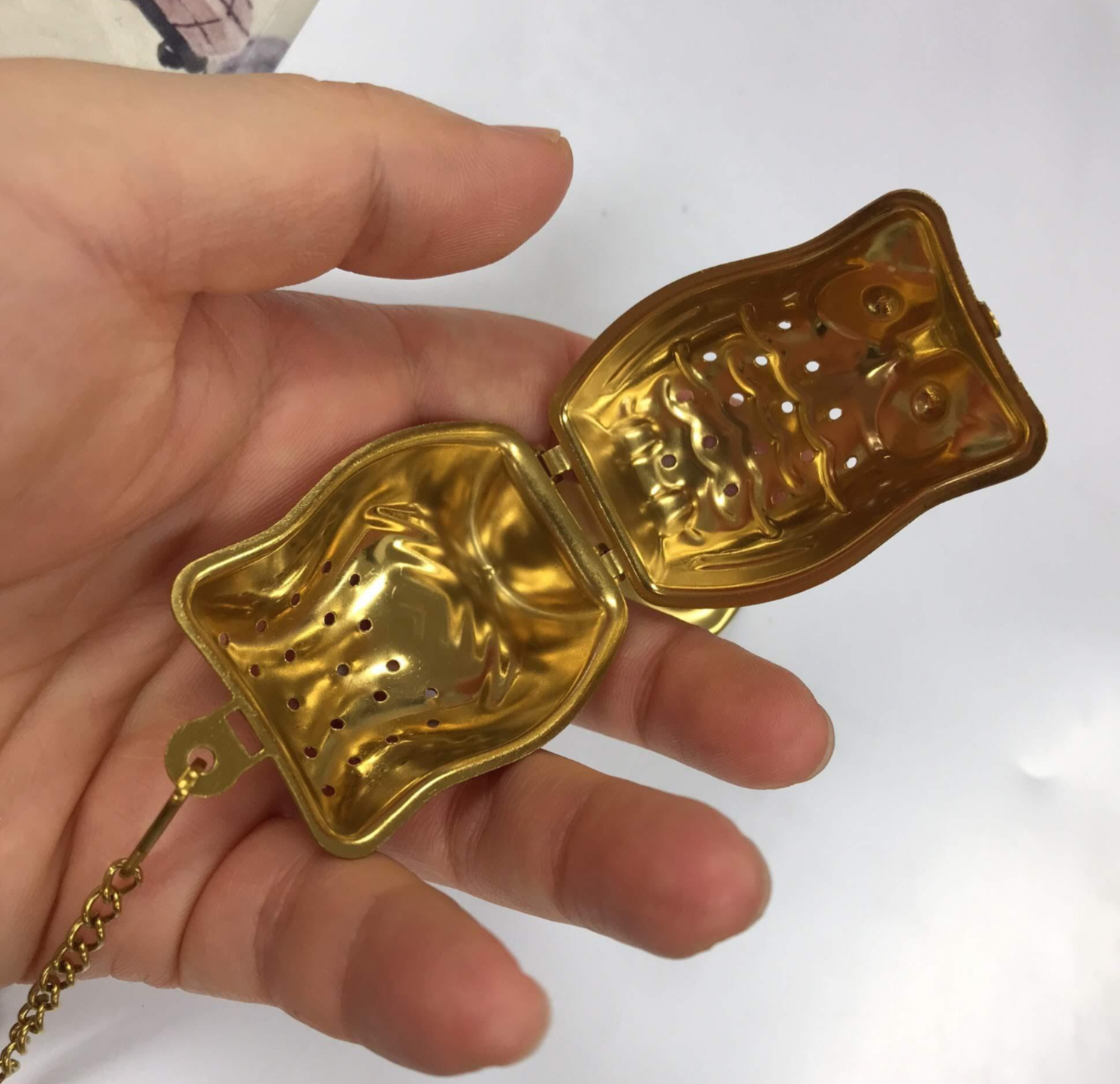 사실 너무 금색이라 사기 전에 좀 망설였다. 왠지 쓰다가 저 금색이 다 벗겨질 거 같고, 내가 다 먹었고 막 중금속을 들이켰고 그런 기분이 들까 봐. 다행히 아직까지 벗겨지거나 녹슬지 않고 잘 쓰고 있다. 이건 인퓨저 3개에 100위안을 줬고 친구들일아 하나씩 나눠 가졌다.