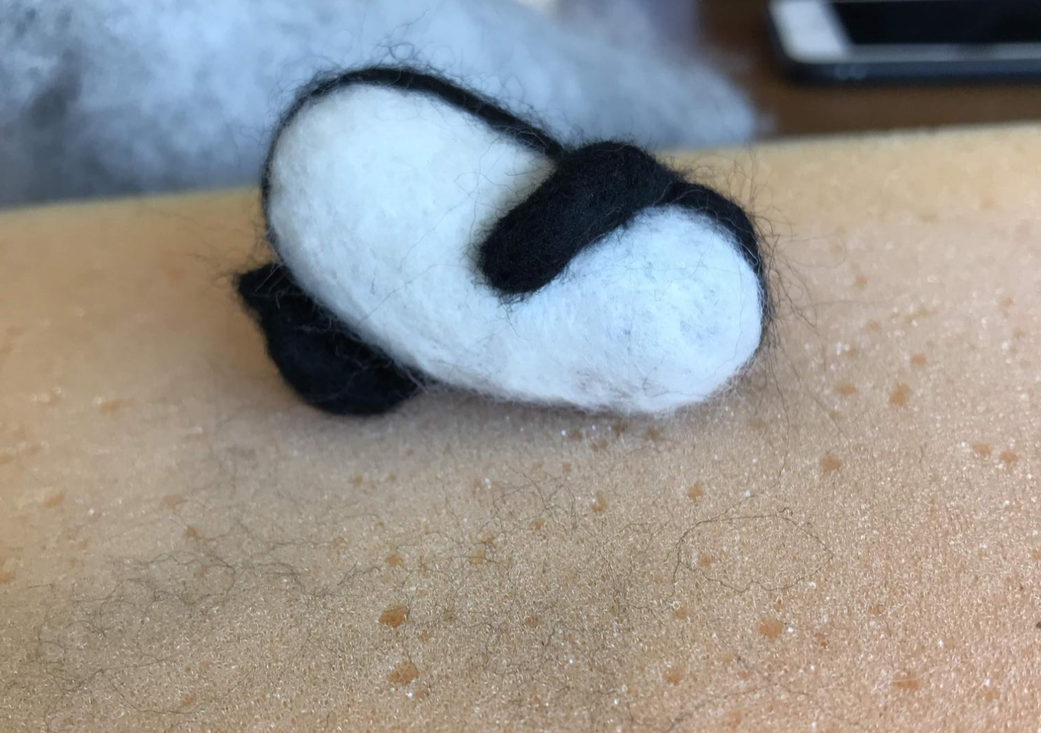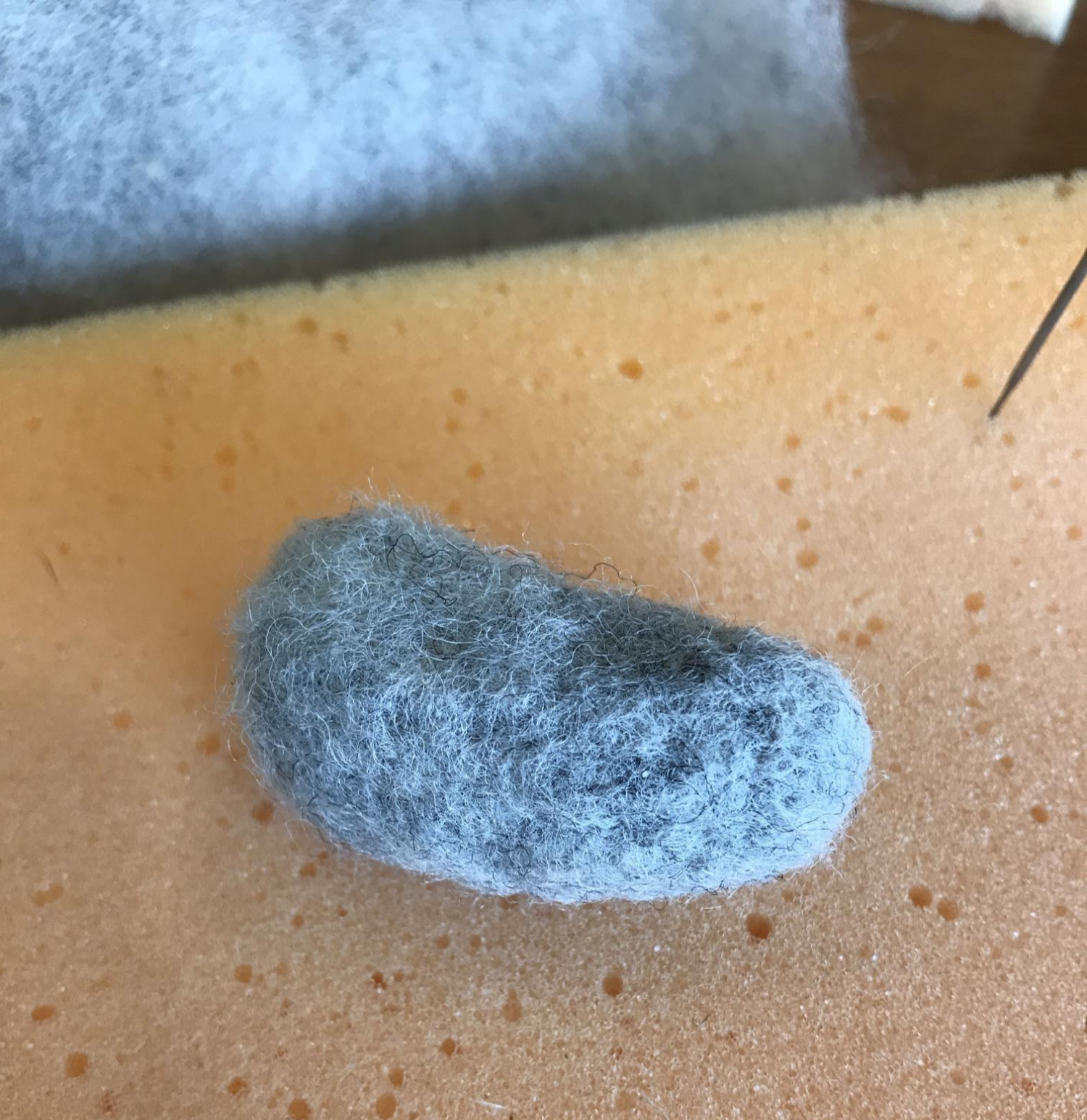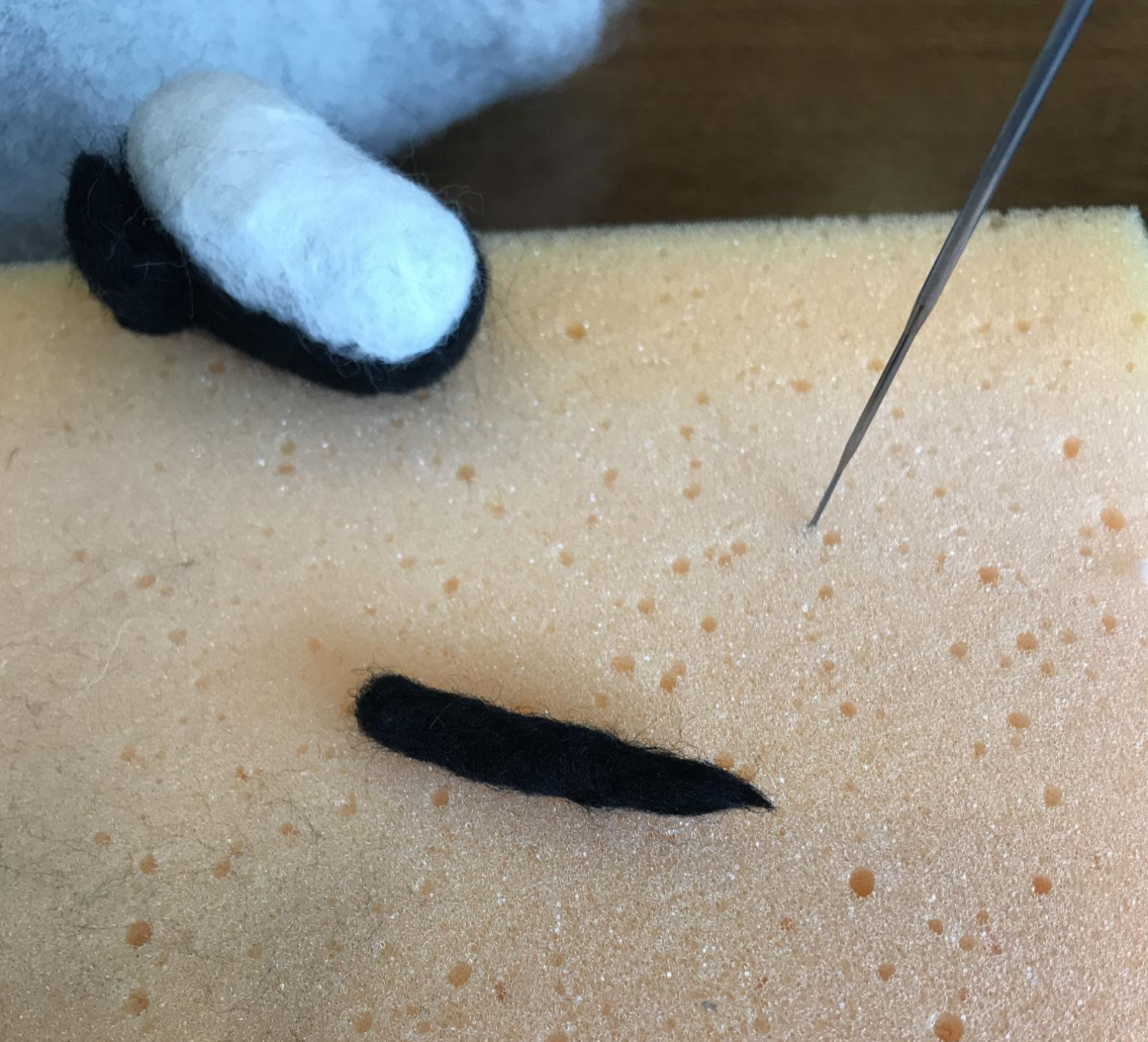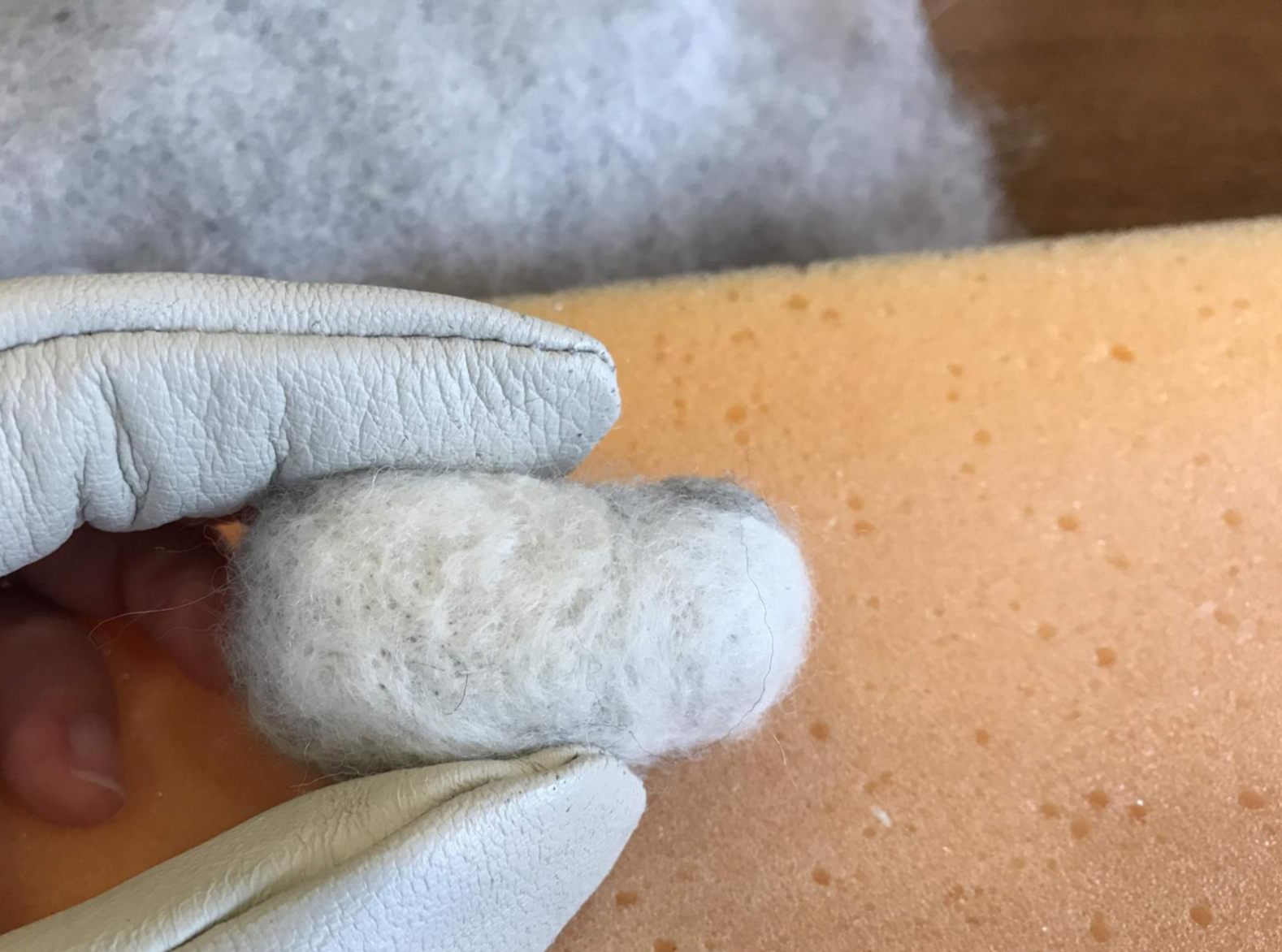 저 누워 있는 무릎 모양을 표현하기 위해서 흰색 양모를 북돋았다. 저기 할 때 조금 어려웠다. 누웠을 때 안정감 있는 모양새를 만들고 싶었는데 마음에 차지 않는다.