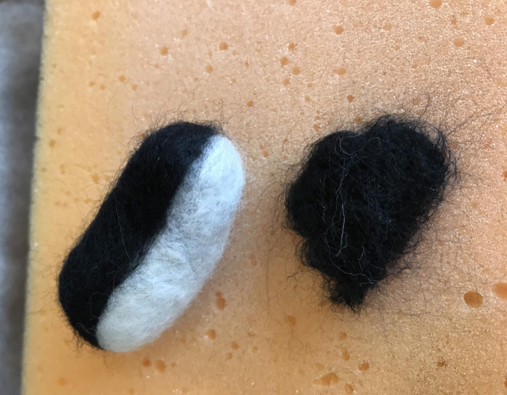 그다음 까만 양모로 나머지 반 부분을 씌운다. 씌우면서 어디까지 씌울지 너무 깊이 생각하지 않아도 된다. 어차피 나중에 수정을 할 거니까.