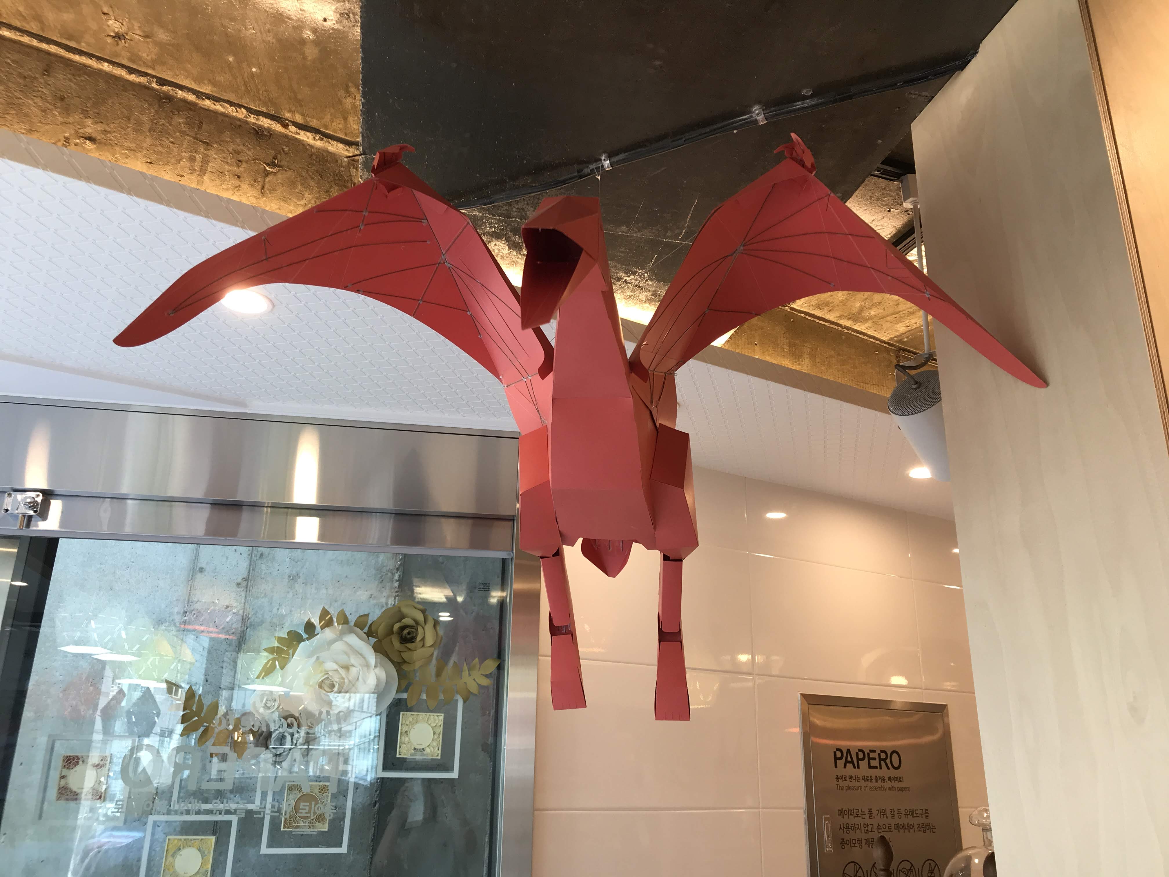 식당 안에는 이렇게 종이 공예품이 전시되어 있고 구매도 가능하다. 벽 하나를 두고 종이 공예품을 전시하고 판매하는 사무실이 있어서 특이했다.