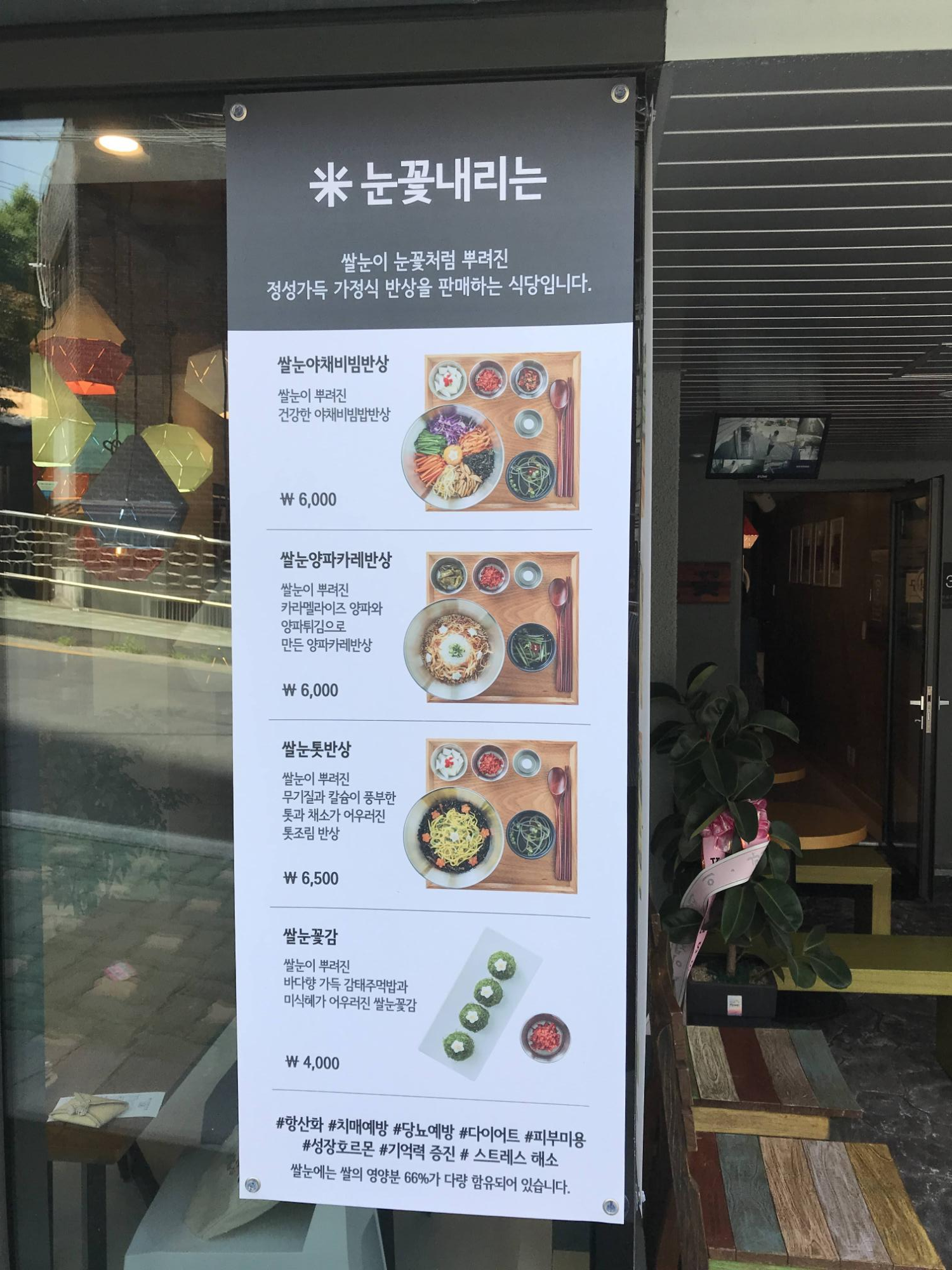 식당의 중요한 콘셉트는 쌀눈을 요리 위에 눈처럼 살살 뿌리는 것 같다. 그래서 쌀눈꽃이 내린다는 이름을 지었나 보다.
