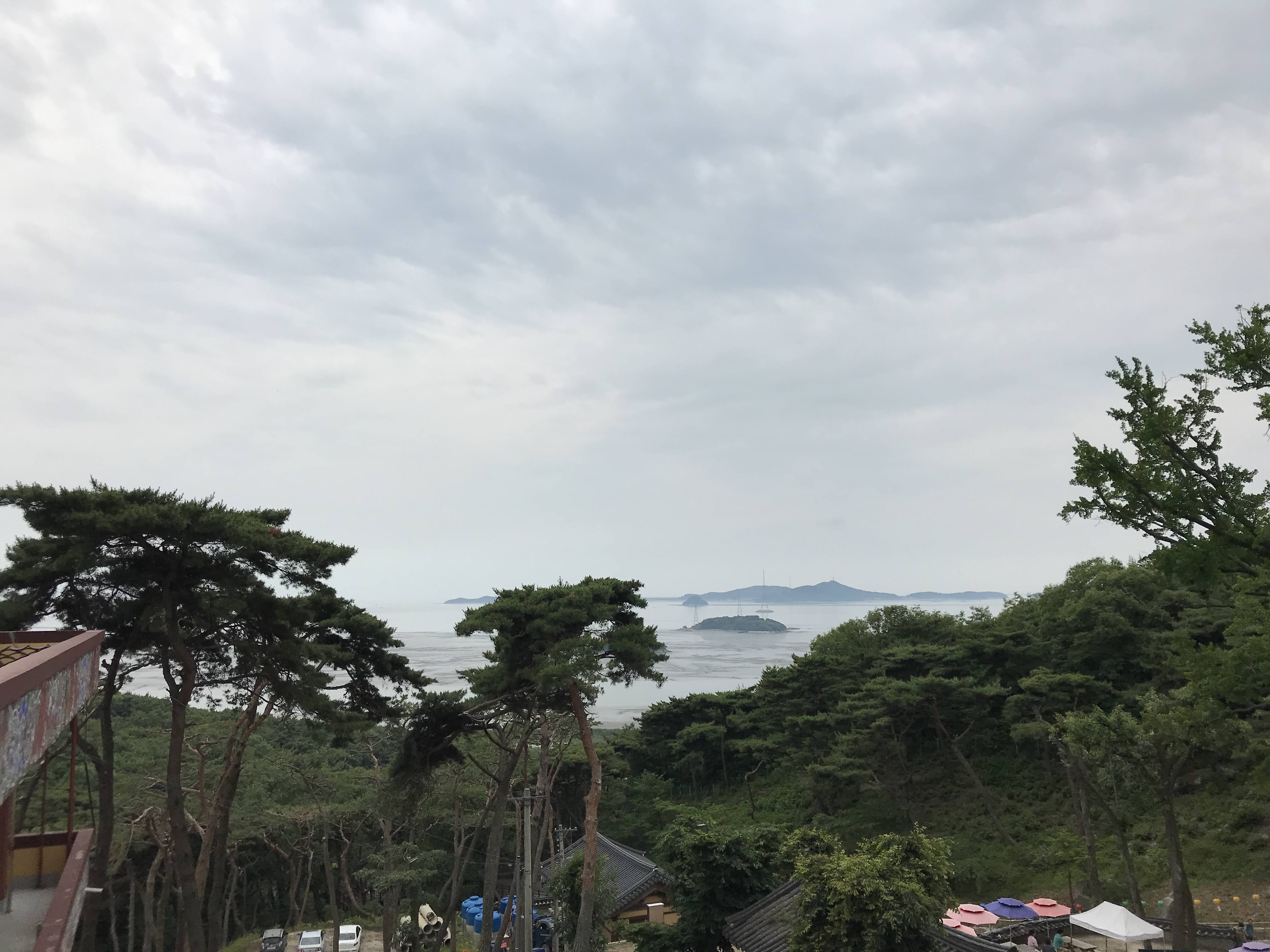 높이 올라오니 경치는 참 좋았다. 바다 위에 떠 있는 섬들이 수묵화처럼 보인다.