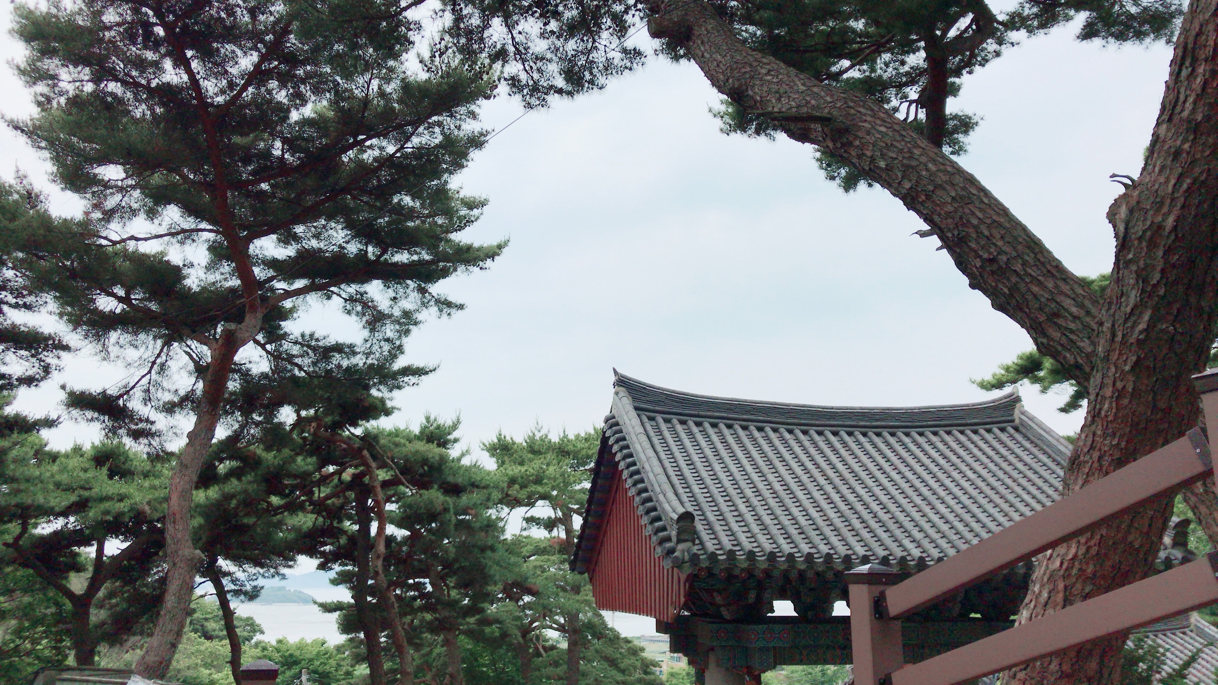 올라가던 길에 찍은 사진. 쉬어 가라고 의자도 놓여져 있길래 쉬었다. 입구에서 얼마 지나지 않았는데도 바다가 보인다.