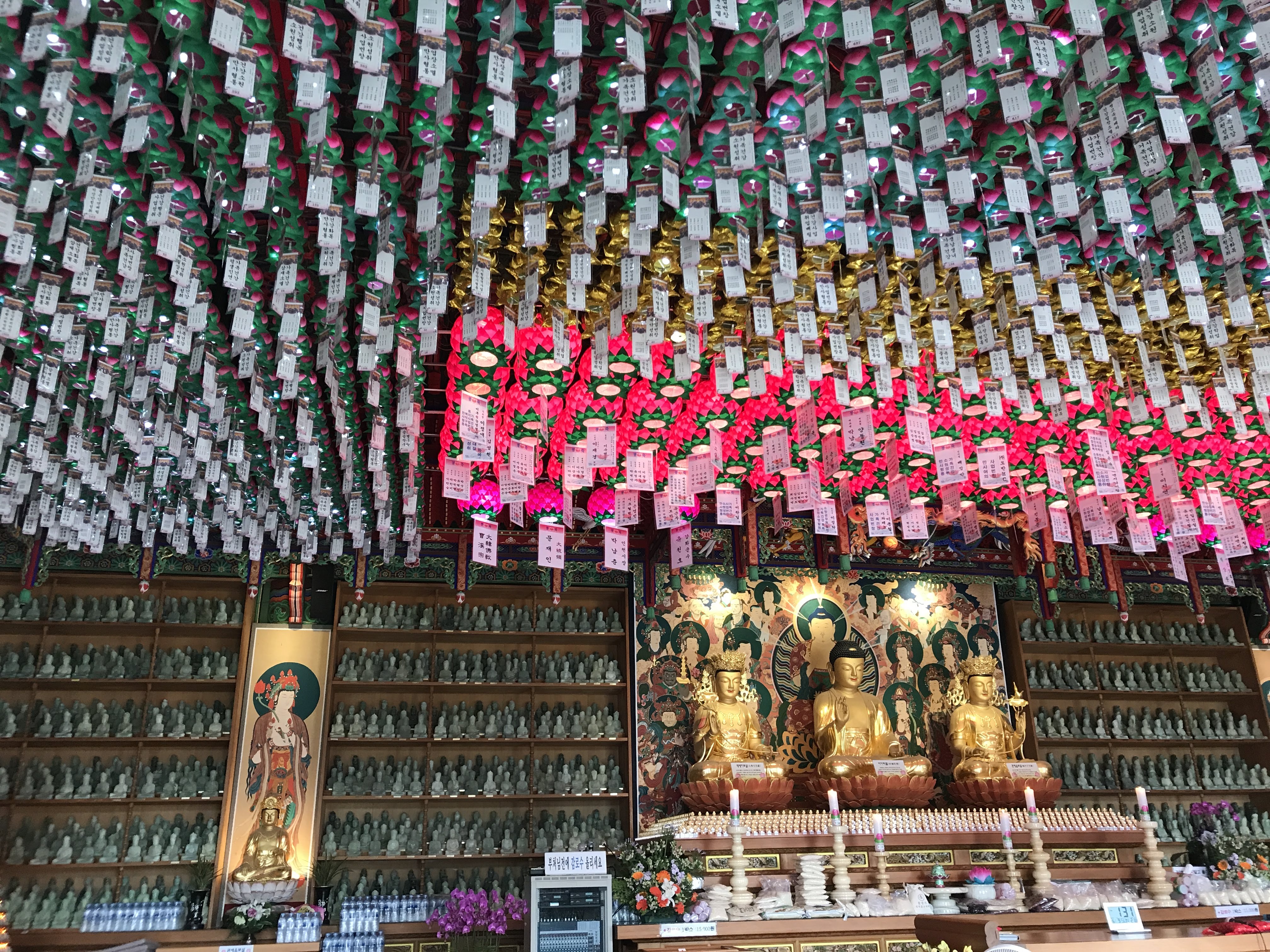촘촘하게 들어찬 불상들과 연등들. 사람들의 소망으로 빼곡한 거 같아서 기분이 묘했다. 다들 각자의 행복과 안녕을 기원했겠지.