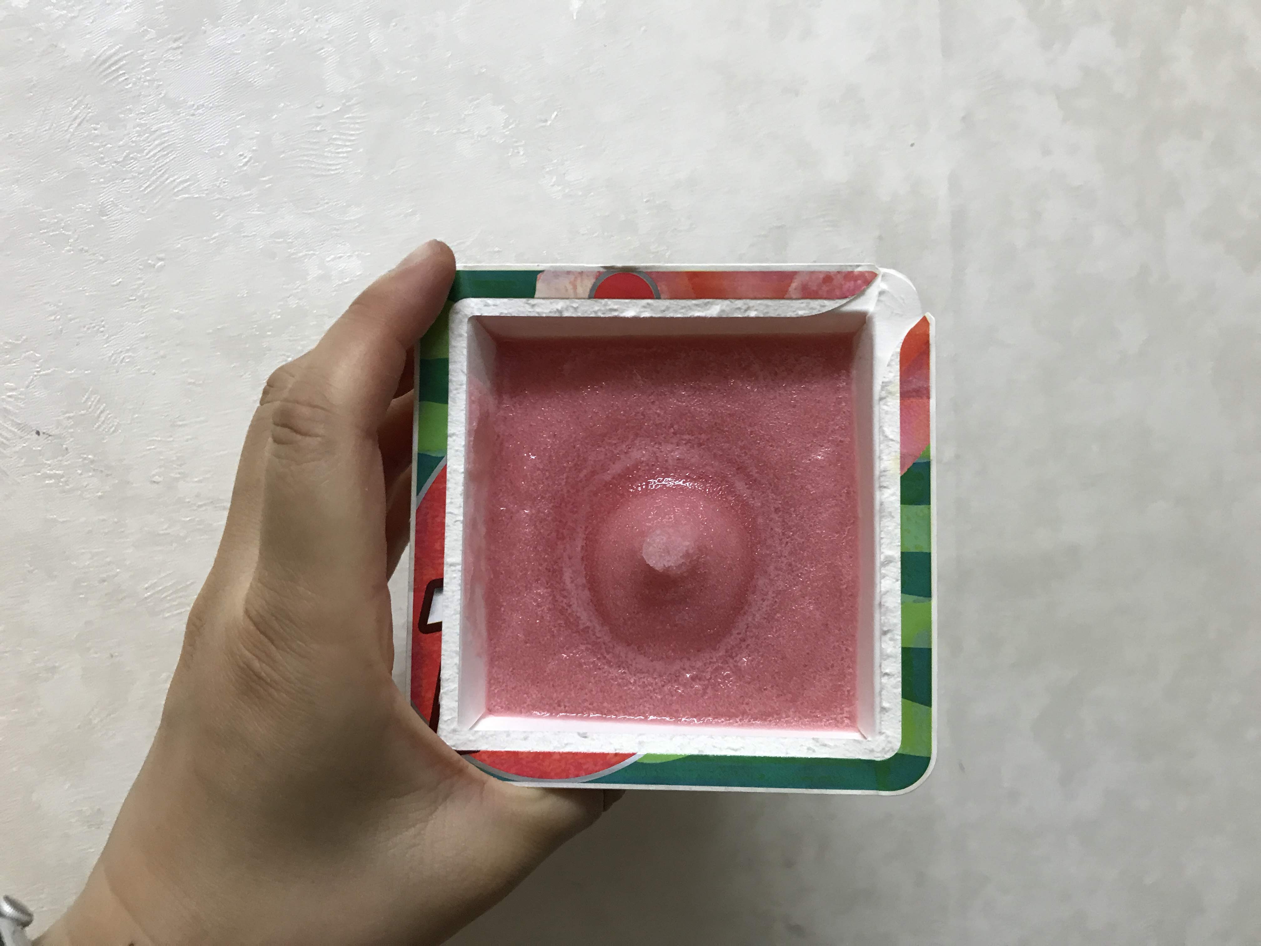 뚜껑을 뜯으면 이렇게 아이스크림이 짜진 흔적이 보인다. 색은 정말 수박색이다.