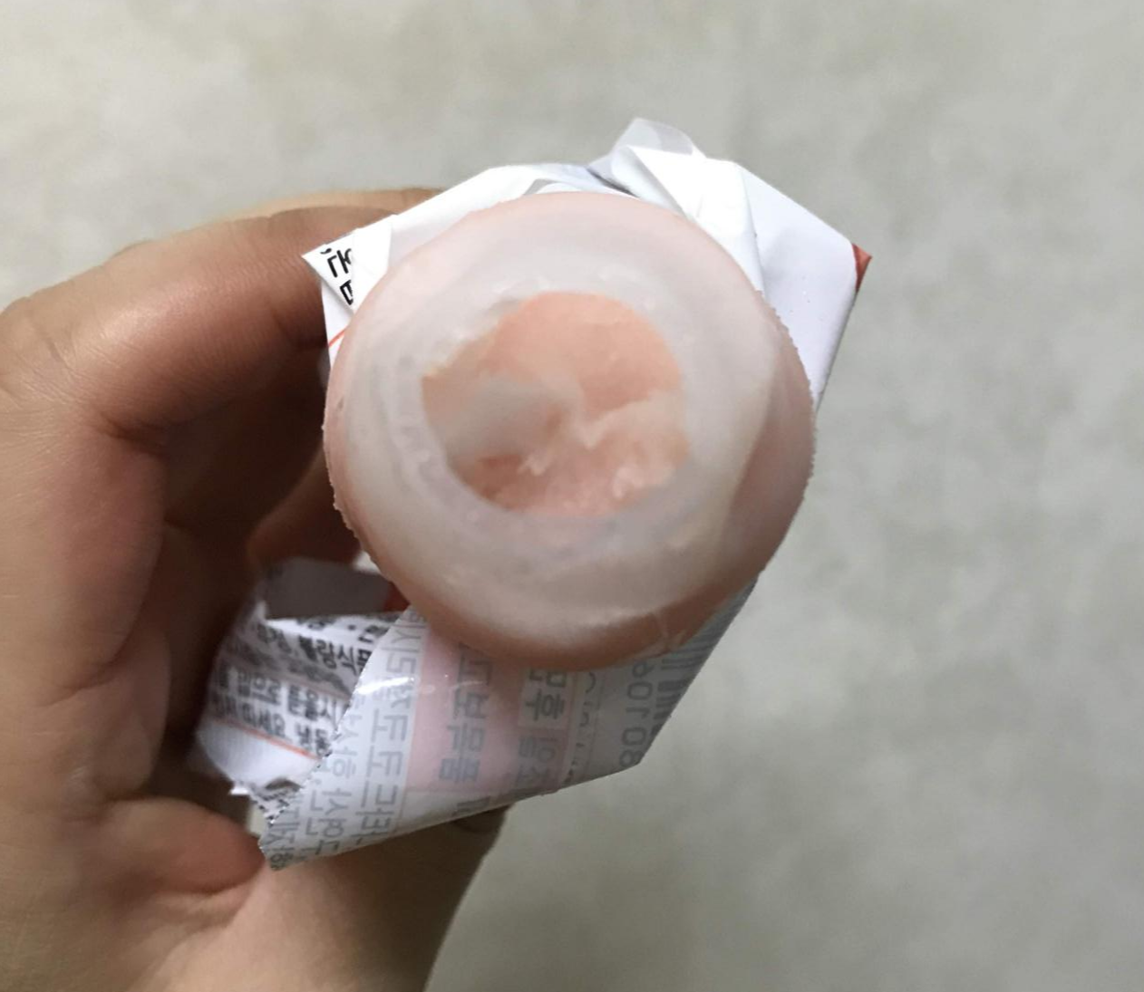 분홍빛 속살을 가진 쭈쭈바다. 잘 보일까 모르겠는데, 얼핏 반투명한 흰빛을 띠는 작은 조각이 코코넛 조각이다.