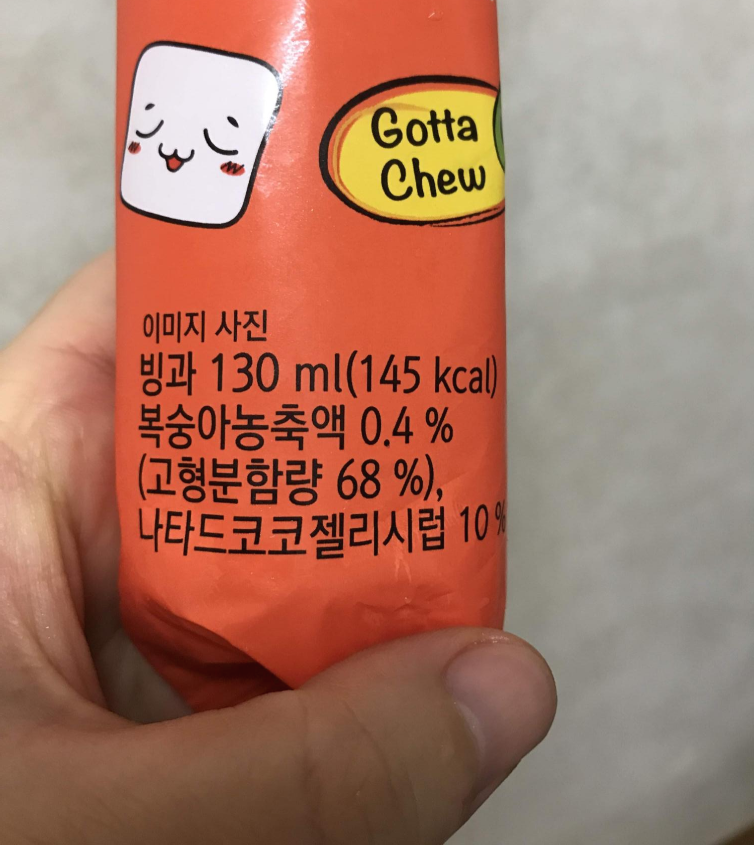 이렇게 보면 별로 안 들어 있는 것 같지만, 먹다 보면 꽤 함량이 높다. 그래서 아이스크림을 먹으면서도 우물우물거릴 수 있다. 맛은 음료수보다는 훨씬 달다. 향은 딱 모구모구의 그 향이라서 거부감은 없다.