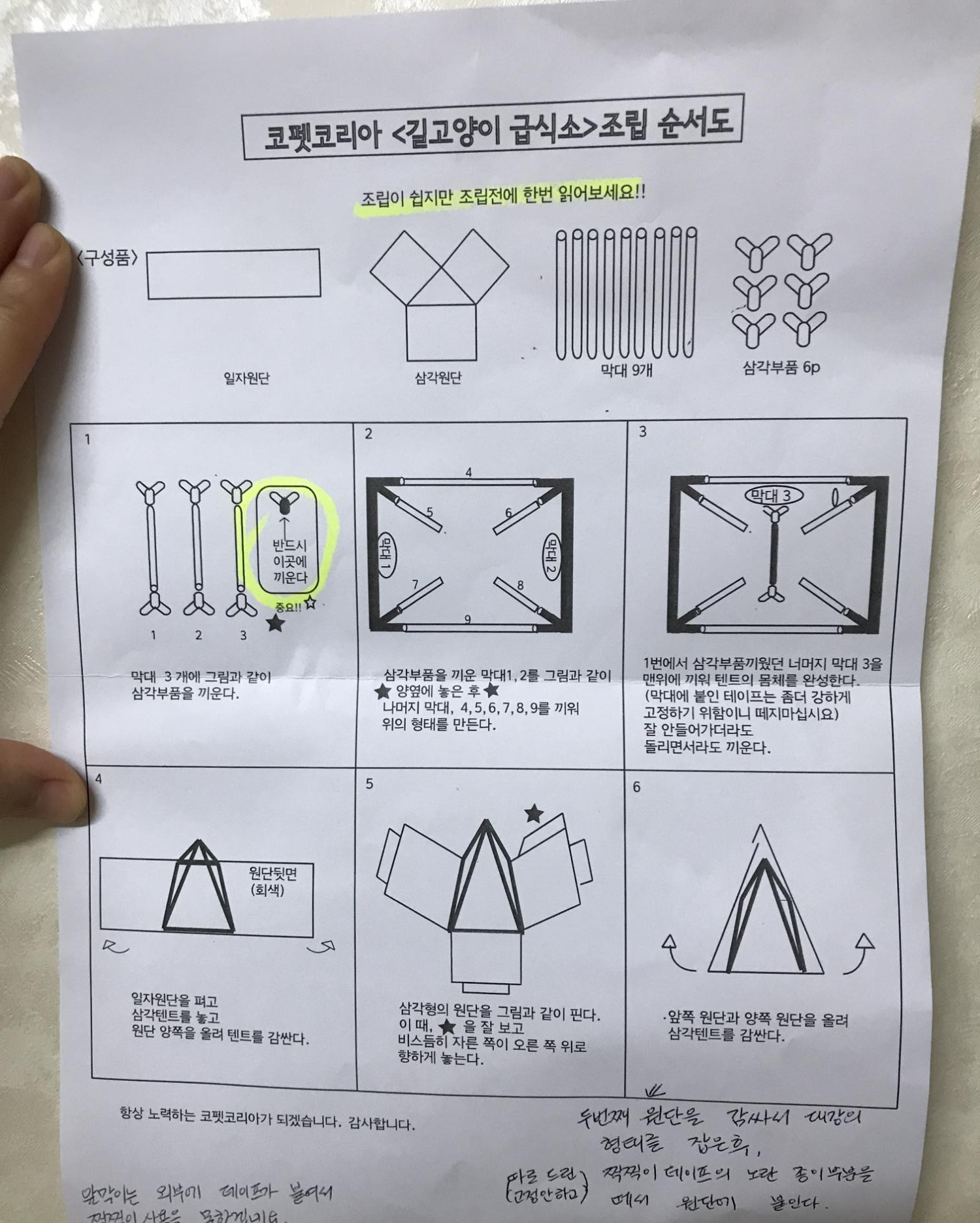 방수 암막천으로 만들어서 비가 와도 괜찮고, 밥그릇과 물그릇 정도는 들어갈 것 같아서 좋아 보였다. 딱 하나 내가 더 바라던 것이 설치와 해체, 재설치가 가능했으면 하는 점이었다. 나는 텐트를 늘 둘 생각은 없었다. 캣맘분이 정해 둔 밥자리가 텐트를 늘 두기에는 관리하시는 분들이 싫어할 것 같았다.그래서 비나 눈이 올 때만 설치하고, 그치면 치울 수 있는 걸 바랐다. 텐트 겉면에 날씨가 개이면 치우겠다는 안내문도 코팅해서 붙이면 될 거 같았고.