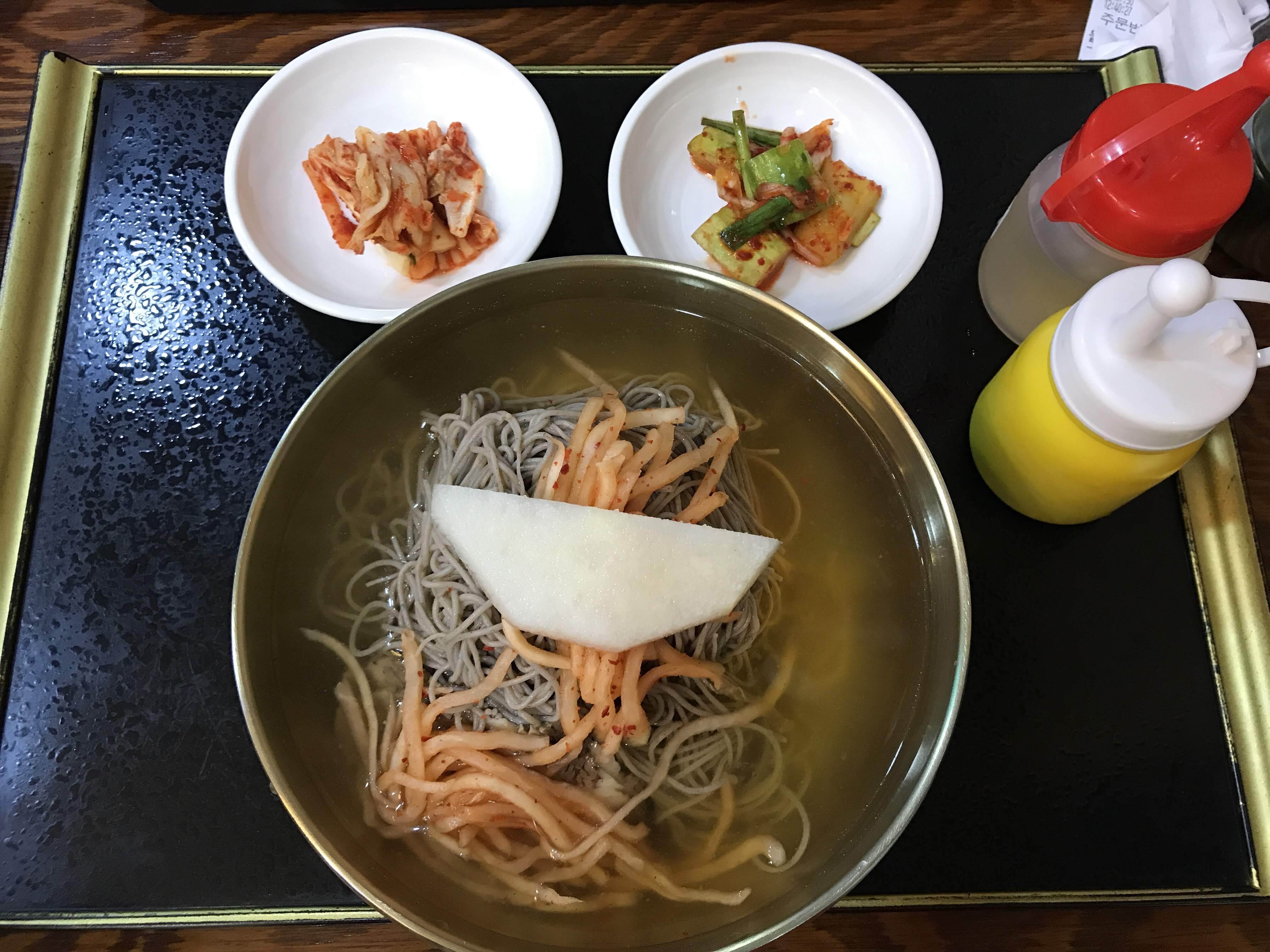 물막국수도 국물 맛이 온화하면서 담백하다. 물냉면처럼 아주 차가운 국물에 나오지 않아서 시원하고 머리가 찡할 정도로 차가운 걸 찾는다면 좀 안 맞을 수도 있다.