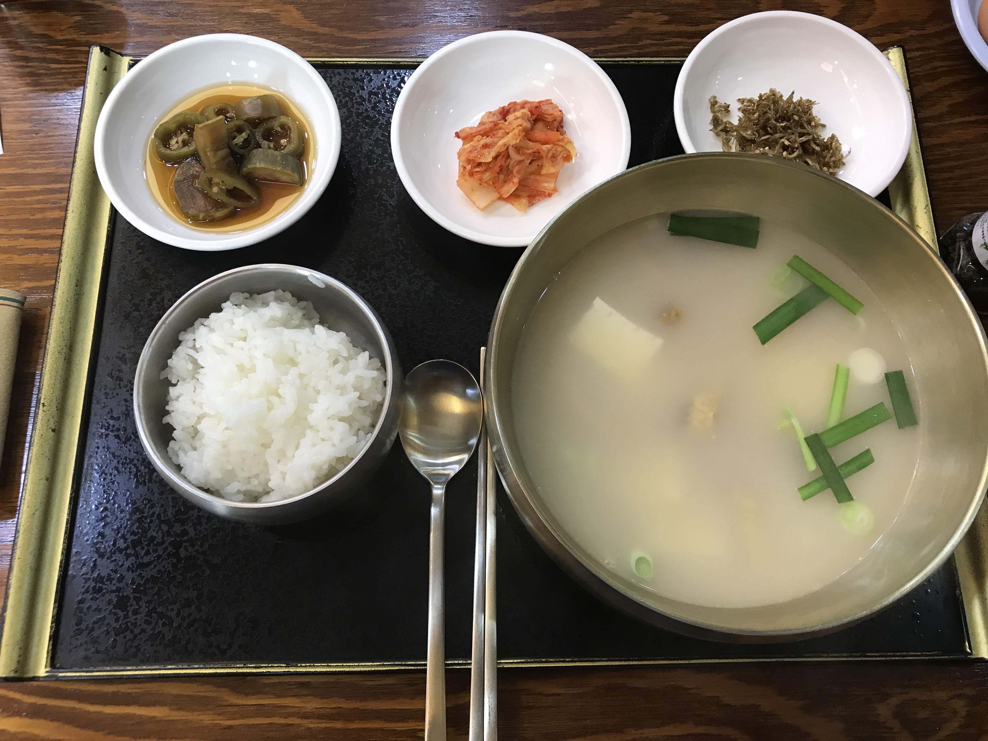 뽀얀 국물은 부드럽고, 같이 나오는 반찬은 적당히 짭조름해서 잘 어울린다. 뭔가 속이 편안해지는 한 끼다.