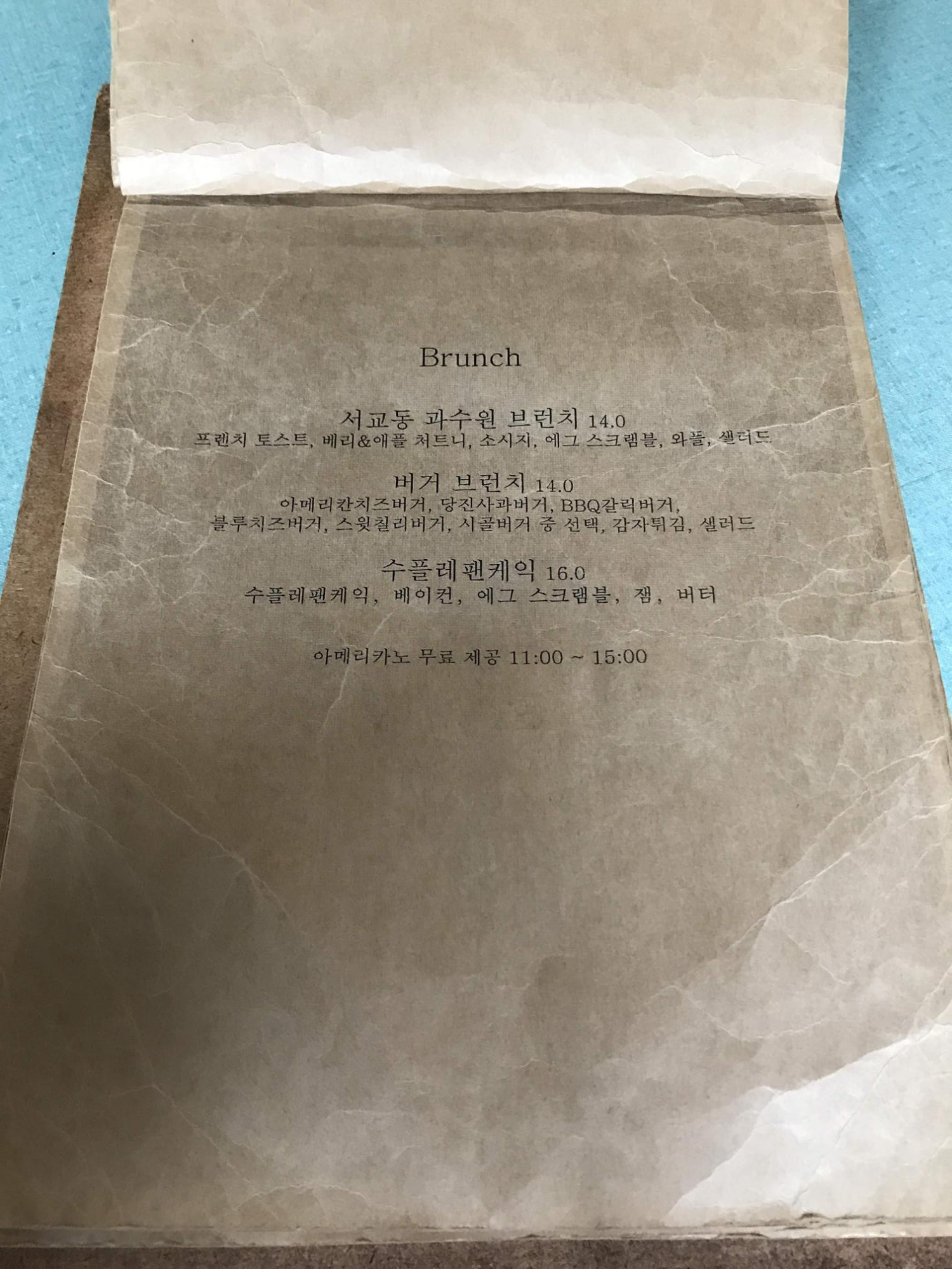 합정에서 만나기로 했는데 무얼 먹으며 놀아야 좋을까 고민하다가 서교동 과수원이라는 곳을 찾았다. 수제버거, 브런치 등을 하는 집인데 주인이 실제로 당진에서 사과 과수원을 운영한다고 한다.
