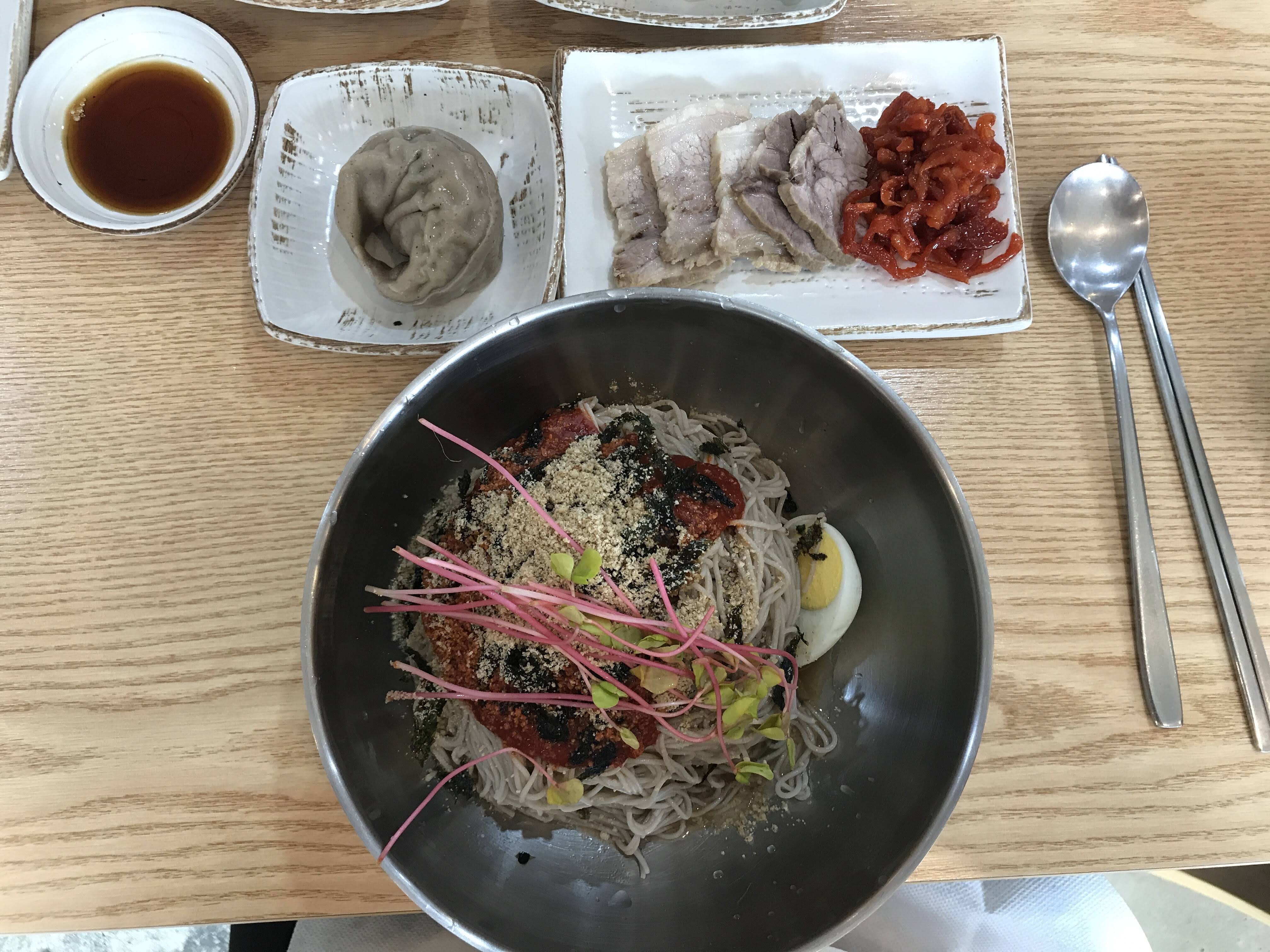 오늘의 선택은 메밀 비빔국수 정식을 시켰다. 메밀헌에서는 무슨 메뉴를 시키건 4천원을 추가해서 정식으로 먹을 수 있다. 4천원을 추가하면 보쌈고기와 메밀 만두 1개를 먹을 수 있다.