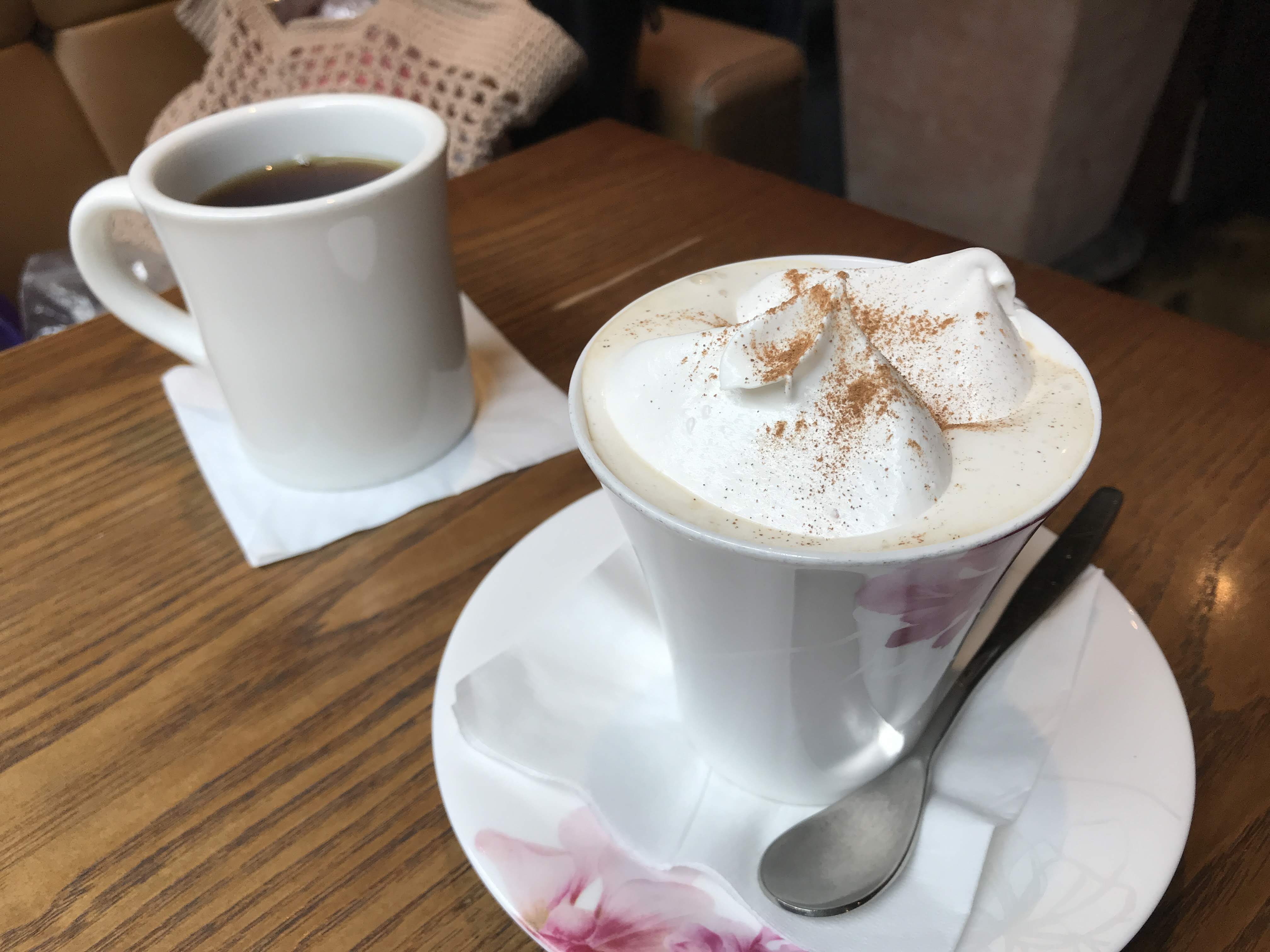 이곳 비엔나 커피는 설탕을 듬뿍 넣은 생크림이 엄청나게 맛있다. 원래도 음료에 얹어 주는 크림을 좋아하는데 여기 생크림이 너무 내 입맛에 잘 맞는다. 달달하면서도 부드러워서 아무리 퍼 먹어도 질리지가 않는다.