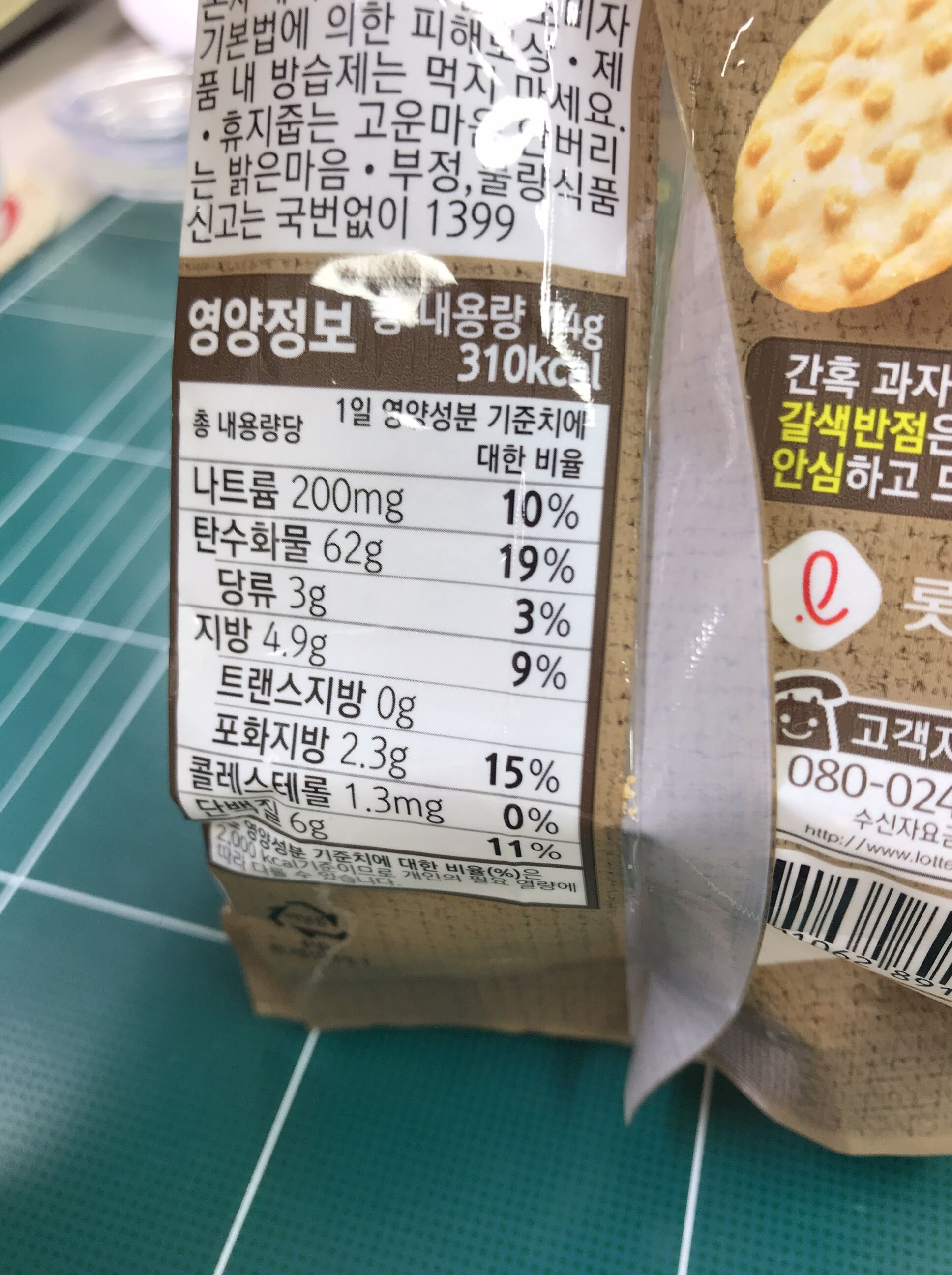 영양정보도 간단하게. 구워서 그런지 생각보다 칼로리가 낮다. 맛은 바삭하고 얇은 쌀과자에 콩가루를 뿌려 먹는 맛이다. 너무 달지 않아서 콩가루를 좋아한다면 먹을 만하다.