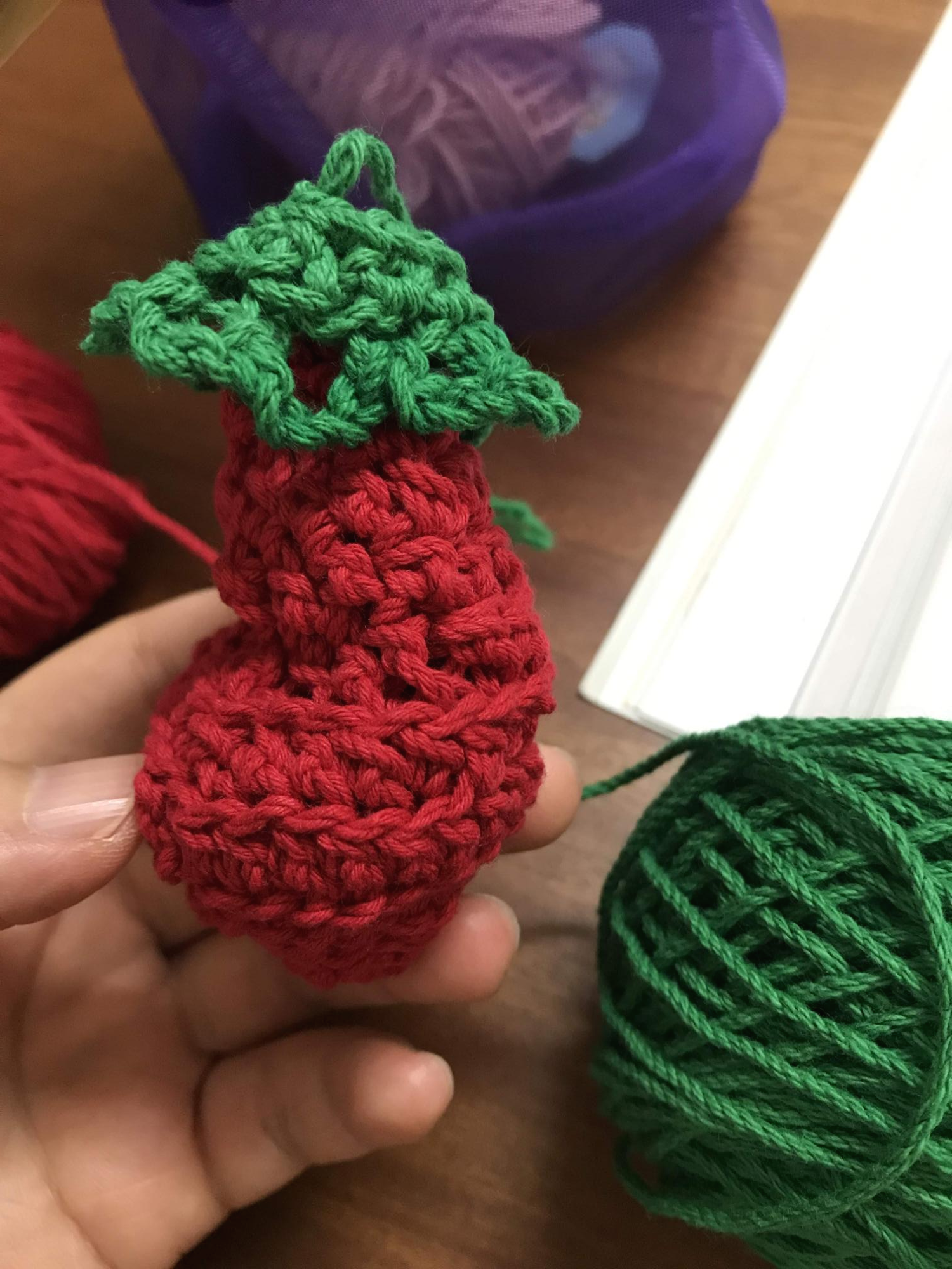이건 딸기를 떠 보겠다고 도전했던 건데 딸기가 아니라 빨간 가지 같다.