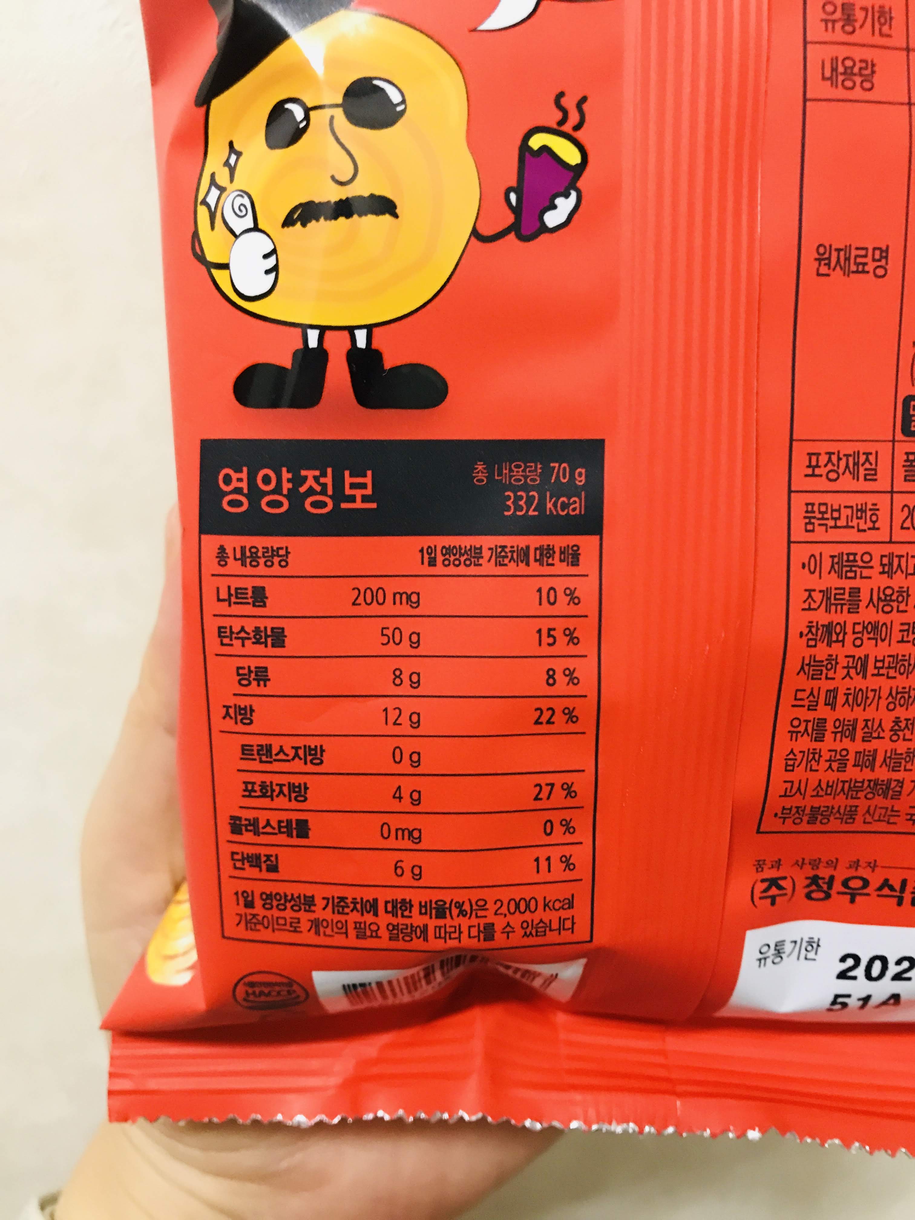 고구마형 으르신 밑에 있는 영양 정보를 살피자. 용량이 작아서 그런지 칼로리도 작은 것 같은 기분이 든다.
