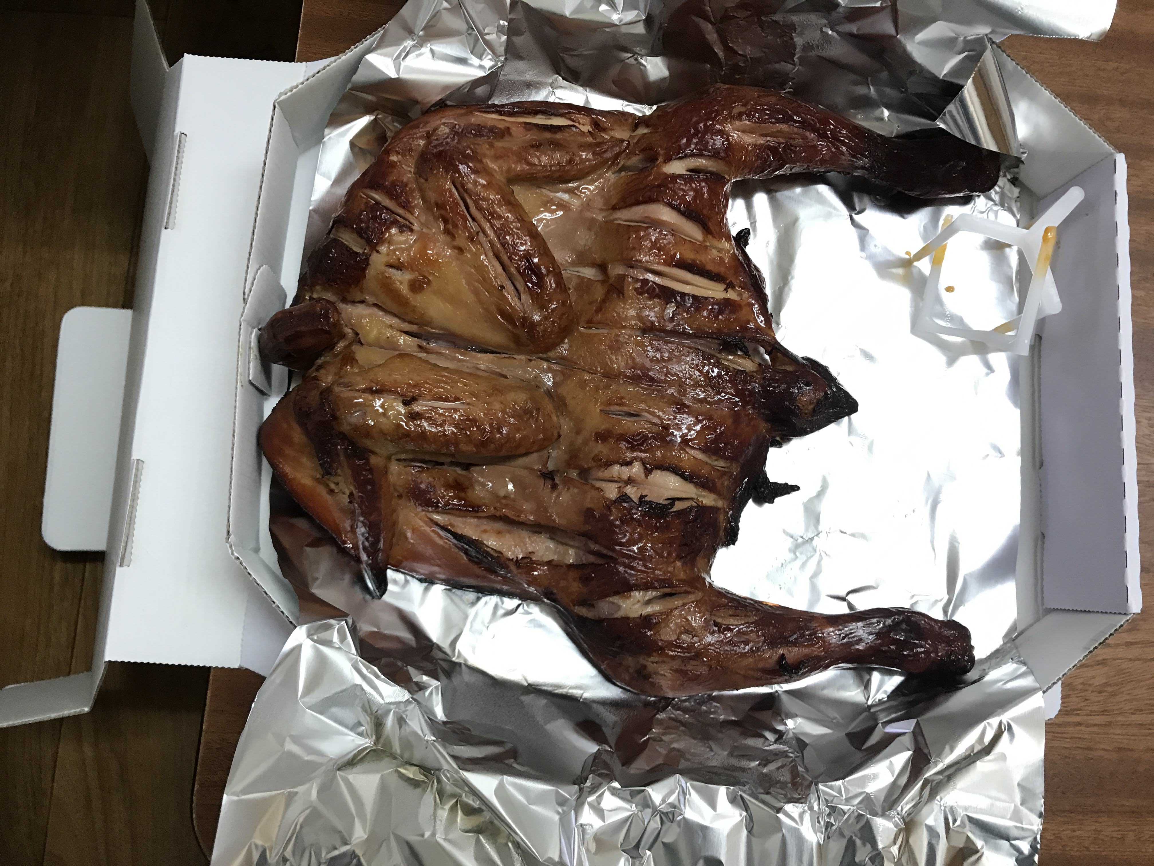 이건 훈제 치킨. 생긴 거에 일단 한번 놀랐다. 이런 통닭은 참 오랜만에 봤다.
